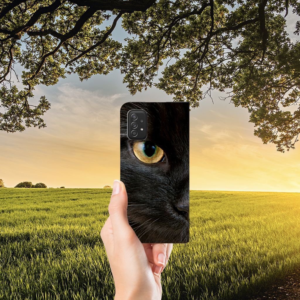 warte katten zijn heel speciaal, vandaar we een exemplaar op een design hoesje hebben gezet. Een zwarte kat schijnt bijvoorbeeld veel beter te kunnen horen dan witte katten. Deze zwarte kat staat op zeer prominente wijze op een stand case. Een Samsung Galaxy A03s Hoesje maken met zwarte kat beschermt jouw smartphone aan alle zijden en wordt ook volledig bedrukt. De stand case met zwarte kat ziet er geweldig uit en is voorzien van verschillende uitsparingen en een speciale standaard. Alle zijden van de case zijn bedrukt. Dit design hoesje is van TPU aan de binnenzijde en zeer flexibel. Verder heeft de case een houder voor een pasje.