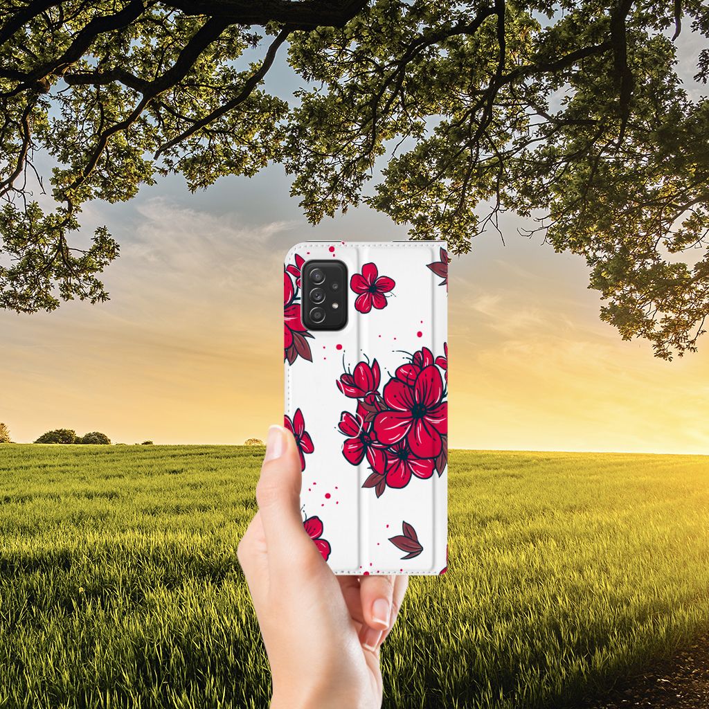 Wie denkt aan Japan, denkt al gauw aan die prachtige kersenbomen die in het begin van de lente in bloei staan en het land hullen in een prachtige zee van bloesem. Wie elke dag wil genieten van deze mooie kersenbloesem, kan natuurlijk ook kiezen voor dit mooie telefoonhoesje! Dankzij de witte achtergrond knallen de rode bloemetjes er mooi uit. Dit blossom red-design staat op een Smart Cover voor de Samsung Galaxy A03s. Dit populaire smartphonehoesje met het heeft één vakje voor een pasje of briefgeld en is aan alle zijden bedrukt. Met de standcase zet je je telefoon gemakkelijk neer, zodat je je handen vrij hebt als je bijvoorbeeld een video wilt kijken. De binnenkant van de standcase is van grijs PU-leer. Dat is fijn, omdat je daardoor niet snel vlekken ziet op je hoesje.