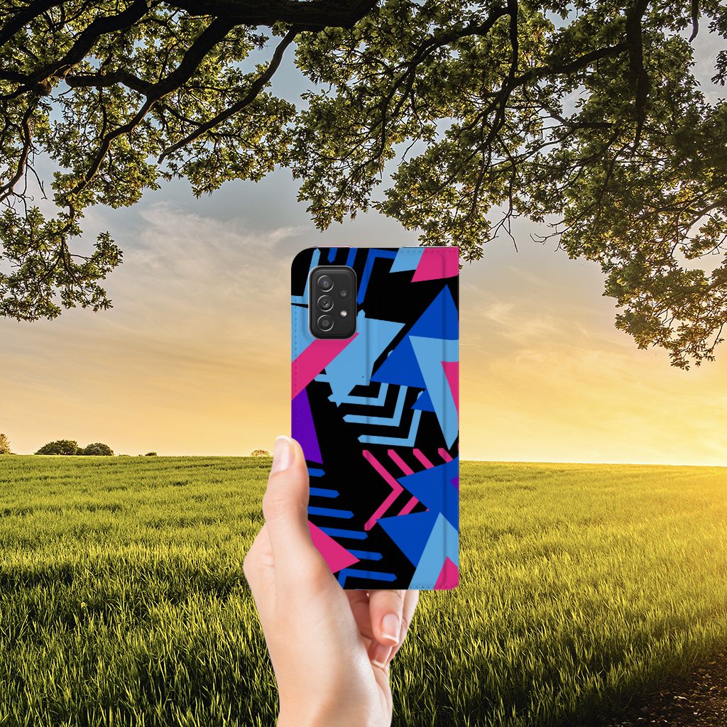 Dit fraaie hoesje met het design Funky Triangle is alles behalve eenvoudig en sober. Dat komt goed uit, want je hebt natuurlijk ook geen doorsnee telefoon gekocht. Mocht je dat wel hebben gedaan, dan wordt hij meteen speciaal als je een Samsung Galaxy A03s Stand Case koopt voor een spotprijsje. Een ding is zeker: opvallen ga je beslist met dit hoesje met paarse, roze en blauwe driehoeken. Jij zult in je element zijn met dit design hoesje met paarse, roze en blauwe driehoeken, omdat het er schitterend uitziet en jouw telefoon perfect beschermt. Het smartphonehoesje beschermt jouw telefoon aan alle zijden en beschikt over 1 opbergvakje en een speciale standaard. Het hoesje wordt afgesloten met een magneet aan de binnenzijde. De houder aan de binnenzijde is van TPU. Alle zijden van de stand case worden bedrukt. De paarse, roze en blauwe driehoeken maken de case helemaal af.
