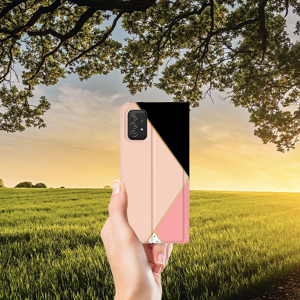 Samsung Galaxy A03s Print Stand Case Zwart Roze Vormen