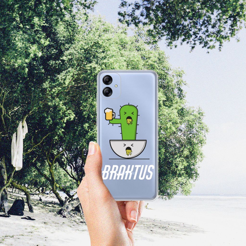 Voor de stappers onder ons hebben we dit hele grappige hoesje ontworpen. Deze Braktus case geeft perfect het gevoel weer als jij in de ochtend wakker wordt na een weekendje carnaval vieren: duf en waardeloos. Hopelijk was dit het wel waard en heb je een gezellige tijd gehad. Als aandenken zou je deze Telefoonhoesje met Naam met cactus print kunnen bestellen. Deze design case beschermt jouw Samsung Galaxy A04e vooral aan de achterkant en zijkanten, het scherm blijft deels onbeschermd. Verder heeft het telefoonhoesje opstaande randen, zodat het toestel bij een val de grond niet direct raakt. Een handig en flexibel hoesje, dat altijd in je broekzak past. Bescherming heb je met carnaval natuurlijk wel nodig, want tijdens het hossen kan de telefoon zomaar uit je outfit vallen. Bestel daarom deze TPU case, gemaakt van schokabsorberend materiaal. Alleen de bovenkant van de case wordt bedrukt en de randen blijven transparant.