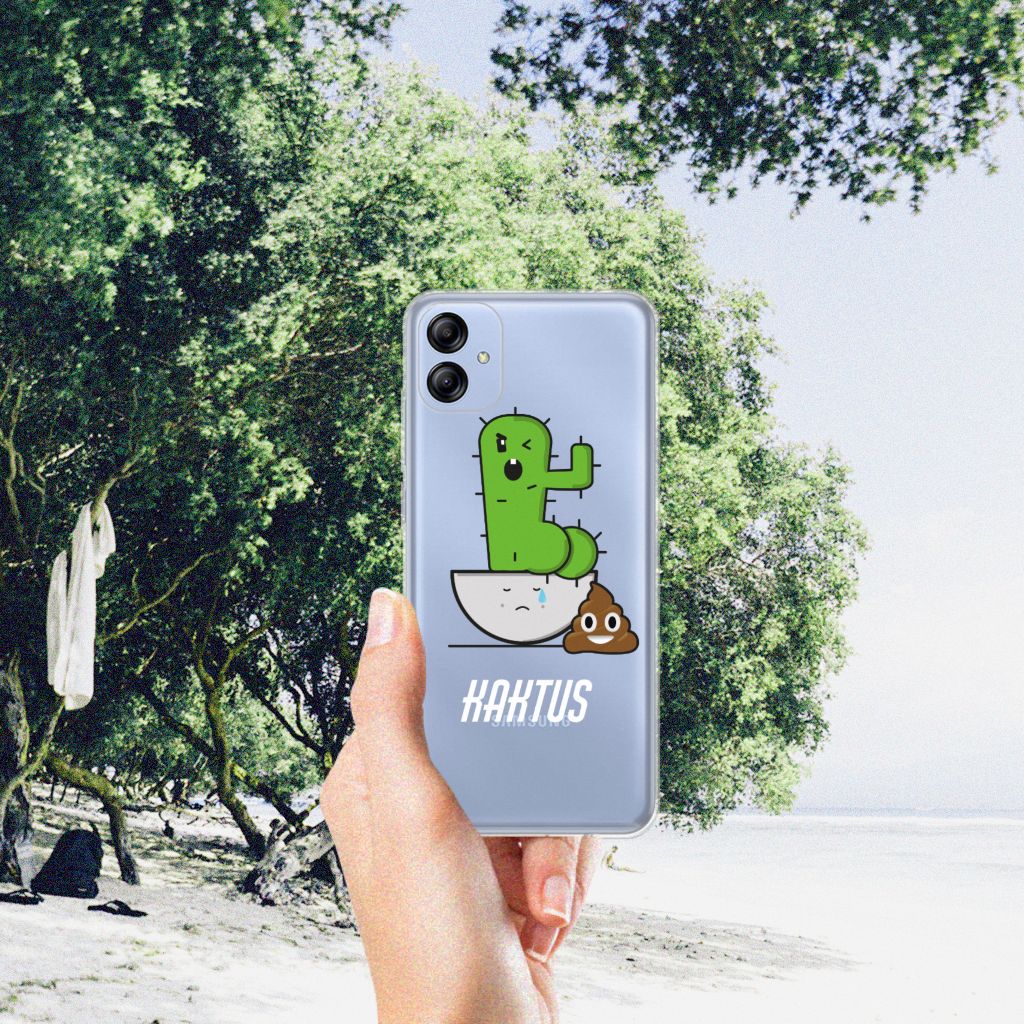 De cactus is leuk, hip en makkelijk te verzorgen. Maar wie denkt dat hij helemaal zonder aandacht kan, heeft het mis. Op dat moment komt hij in opstand, zoals op dit grappige design hoesje met cactus te zien is. Deze Telefoonhoesje met Naam met Cactus Poo design is van alle markten thuis. Het is een zeer veilig maar ook prachtig en praktisch hoesje. Dat bewijzen het flexibele en schokabsoberende materiaal en het lichte gewicht. De meeste cactussen komen uit Amerika. Daar groeien ze in hun natuurlijke omgeving, de woestijn en steppen. Maar ze groeien ook in tropische regenwouden. Dit geeft aan dat de cactus een plant is die zich makkelijk aanpast. Dat geldt dus helaas niet voor de cactus op dit tpu hoesje, maar jouw Samsung Galaxy A04e is wel goed beschermd. Valt de telefoon op de grond, dan beschermen de opstaande randen van de case het touchscreen. Alleen de bovenkant van dit hoesje wordt bedrukt met de geinige kaktus. De zijkanten van de TPU case blijven transparant.