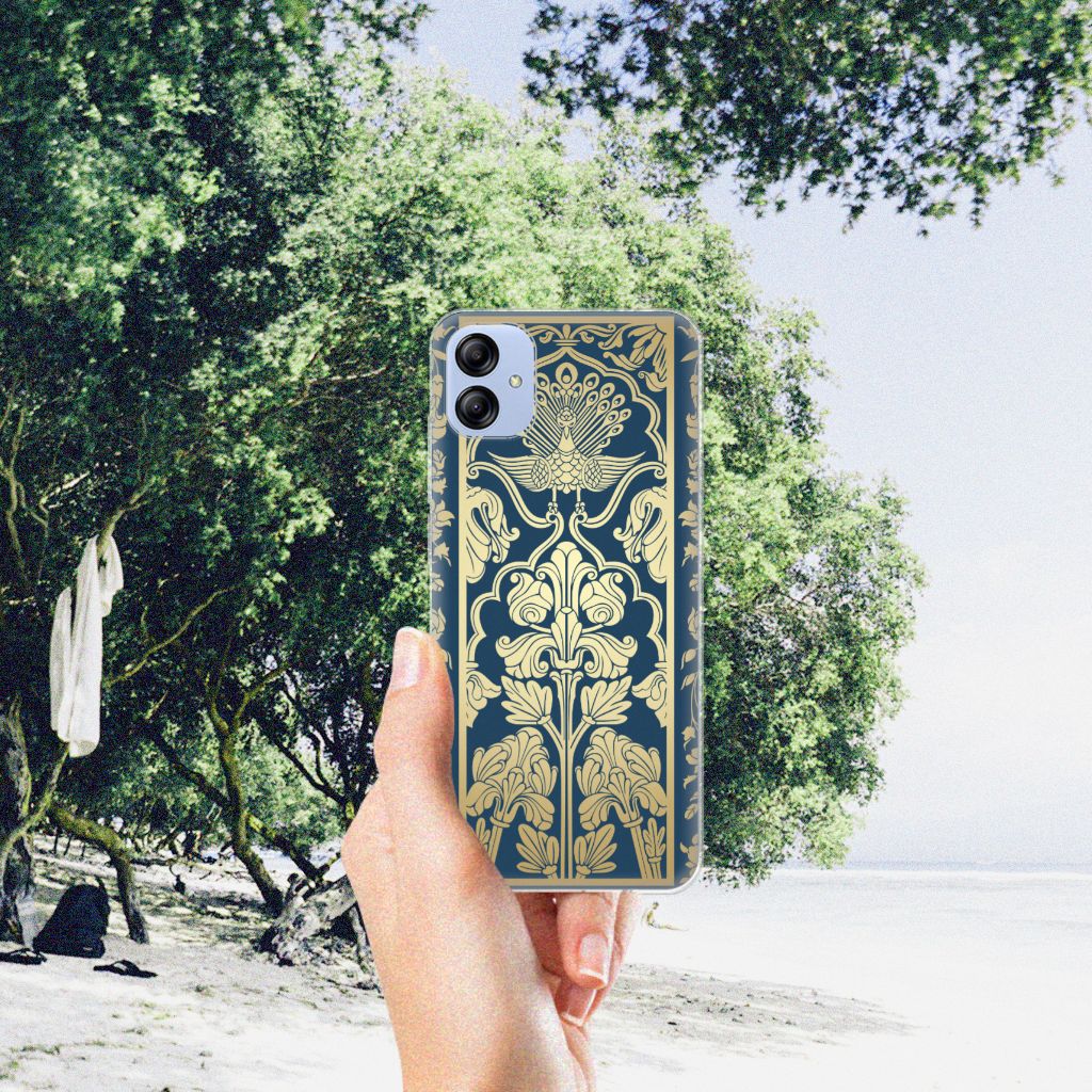 Dit koninklijke hoesje met Beige Flowers ziet er oogverblindend uit. De beige kleur geeft dit design hoesje een super fraai en chique uiterlijk. Je voelt jezelf de koning te rijk als je jouw telefoon beschermt met deze elegante case. De donkerblauwe achtergrond geeft dit design hoesje extra uitstraling en combineert goed met beige. Het hoesje ziet er zeer kostbaar uit, maar is erg goedkoop. Voor een zeer bescheiden bedrag ben je in het bezit van dit design hoesje. De case geeft jou en je Samsung Galaxy A04e extra status. Voor goedkope design hoesjes zit je goed bij B2C Telecom. Het design staat op een TPU Case. Dit hoesje wordt alleen aan de bovenkant bedrukt en is zeer flexibel. De randen van het hoesje blijven transparant en worden niet bedrukt. Met dit hoesje past jouw telefoon altijd in je broekzak.