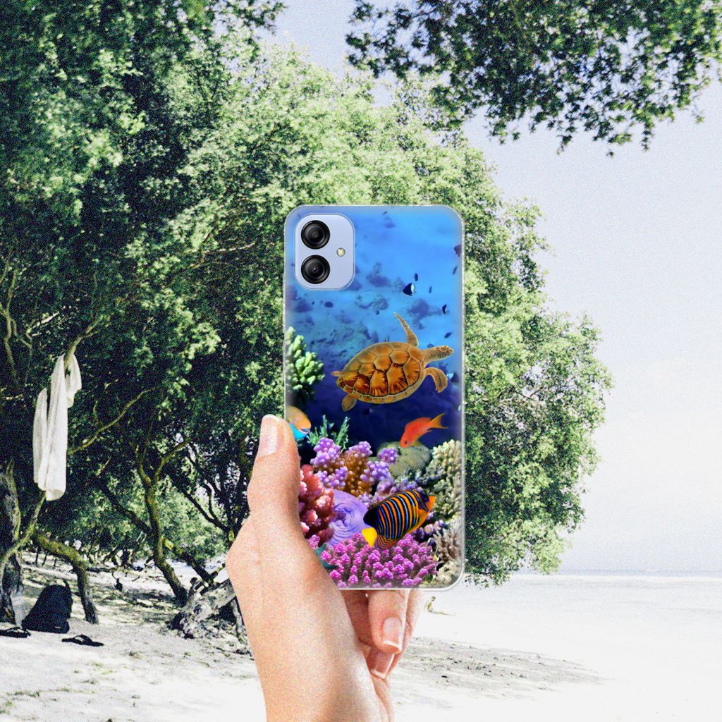 Dit kleurrijke hoesje met tropische Vissen is een ware eyecatcher. Als je aan het duiken bent en je treft een school aan met dit soort opvallende vissen, dan heb je een geweldige ervaring. Maar je hoeft er eigenlijk niet per se het water voor in te duiken. Want wij hebben een schitterende verzameling vissen op dit design hoesje gezet. Met onze zeer geavanceerde printer zetten we de afbeelding van vissen op de bovenkant van de Samsung Galaxy A04e TPU Hoesje, de randen blijven transparant. De case is gemaakt van zeer elastisch en onbreekbaar materiaal. Verder is je telefoon natuurlijk goed beschermd met deze tpu case met print van vissen. Deze case heeft tevens opstaande randen, waardoor je scherm de grond niet zal raken als de smartphone uit je handen valt.
