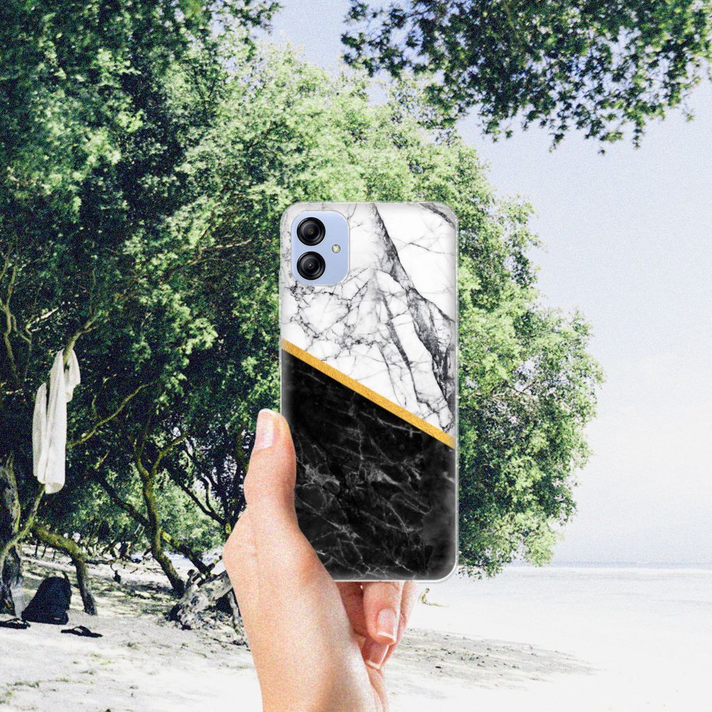 Dit design hoesje met zwartwit marmer is zeer geschikt voor jouw kostbare telefoon. Vanwege zijn prachtige lichtval en vastheid is marmer zeer gewild als bouwmateriaal. Op jouw smartphone kun je lange tijd bouwen als jij kiest voor deze hele mooie Samsung Galaxy A04e TPU Siliconen Hoesje. Naast het zwart-witte marmer zijn er de diverse marmersoorten in een ruim kleurenpallet te krijgen. Deze tpu case met marmer in zwart-wit wordt aan de achterzijde bedrukt. De case beschikt over opstaande randen en is gemaakt van onbreekbaar materiaal. De randen van de case in zwart wit marmer blijven transparant. Wij hebben onze designer veel vrijheid gegeven met het ontwerpen dit mooie hoesje. Het resultaat zie je terug in deze tpu case met zwartwit marmer, dat een hele goede bescherming is voor jouw smartphone.