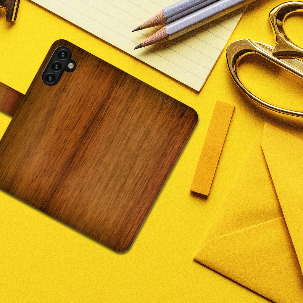 Samsung Galaxy A04s | Samsung Galaxy A13 5G Book Style Case met pasjeshouder Donker Hout