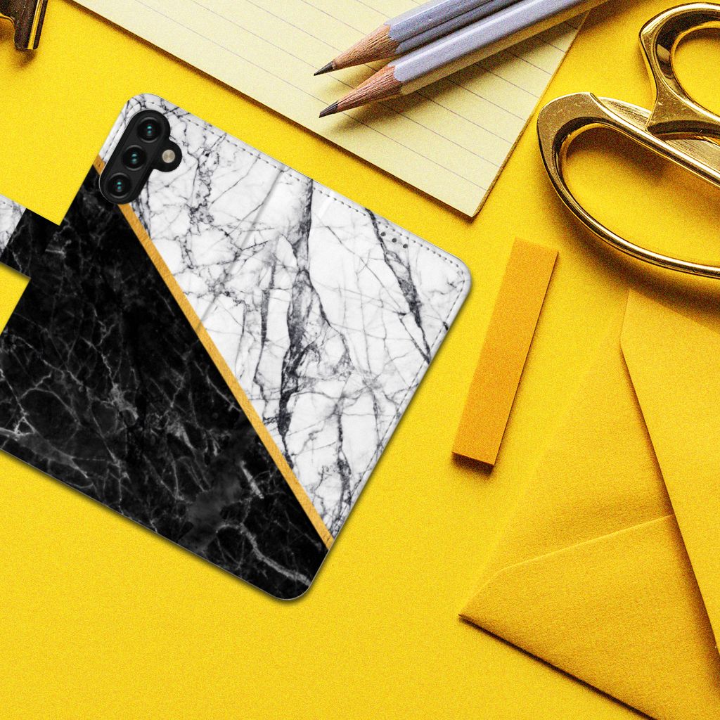 Bookcase Samsung Galaxy A04s | Samsung Galaxy A13 5G Marmer Wit Zwart