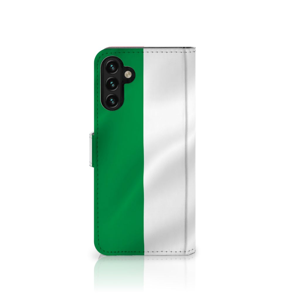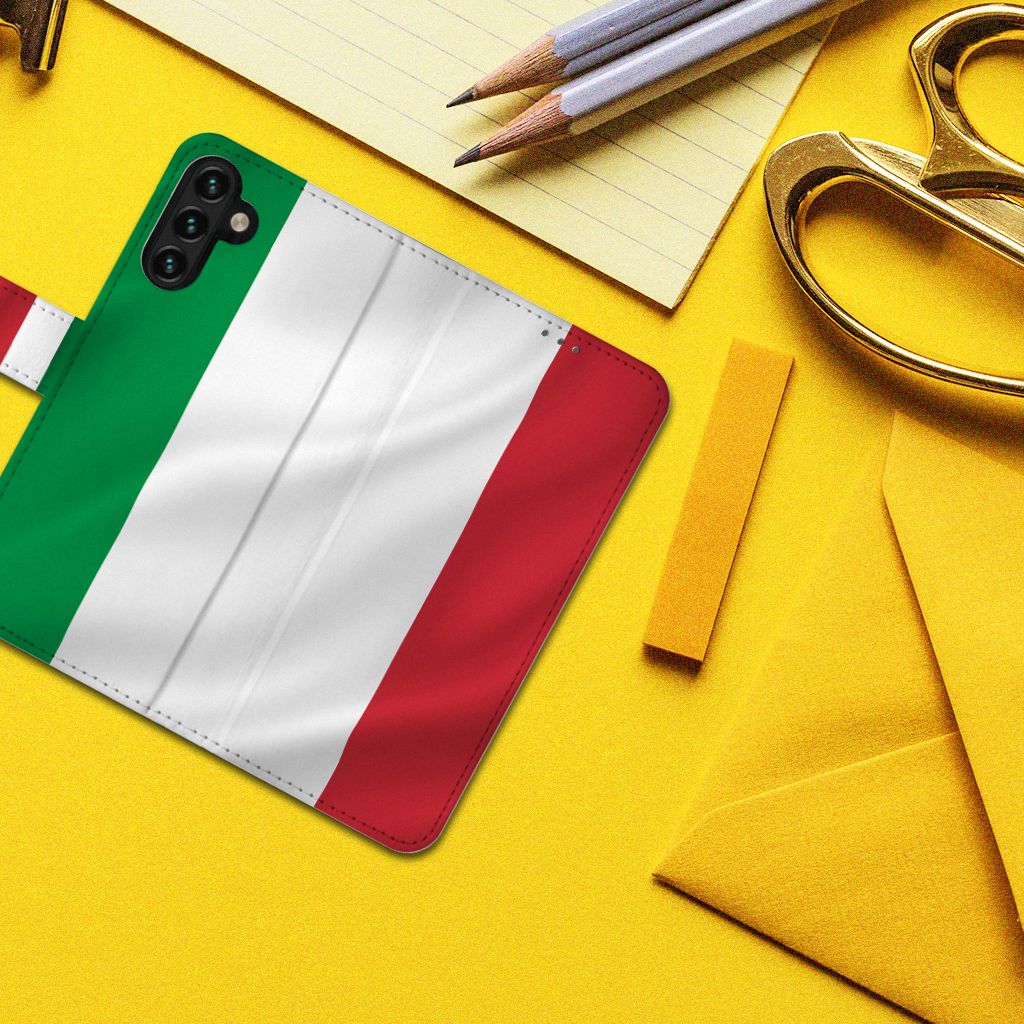 Vroeger werden vlaggen gebruikt om een boodschap over te brengen of een ridderorde aan te duiden. Tegenwoordig worden vlaggen gebruikt voor verschillende doeleinden. Een vlag kan worden gebruikt om te verwijzen naar een land, stad of beweging. Het staat symbool voor de nationaliteit van de mens. In onze collectie hebben wij alle Europese vlaggen opgenomen. De vlag wordt gedrukt op een Bookstyle Case voor de Samsung Galaxy A04s | Samsung Galaxy A13 5G en heeft drie vakjes voor pasjes en briefgeld. Het hoesje wordt afgesloten met een lipje aan de voorkant. Ook bieden wij de mogelijkheid om gratis je naam toe te voegen om het hoesje helemaal af te maken. Wil je meer vrijheid om het hoesje helemaal naar eigen wens te maken? Ga dan verder met ontwerpen in ons unieke ontwerpprogramma.