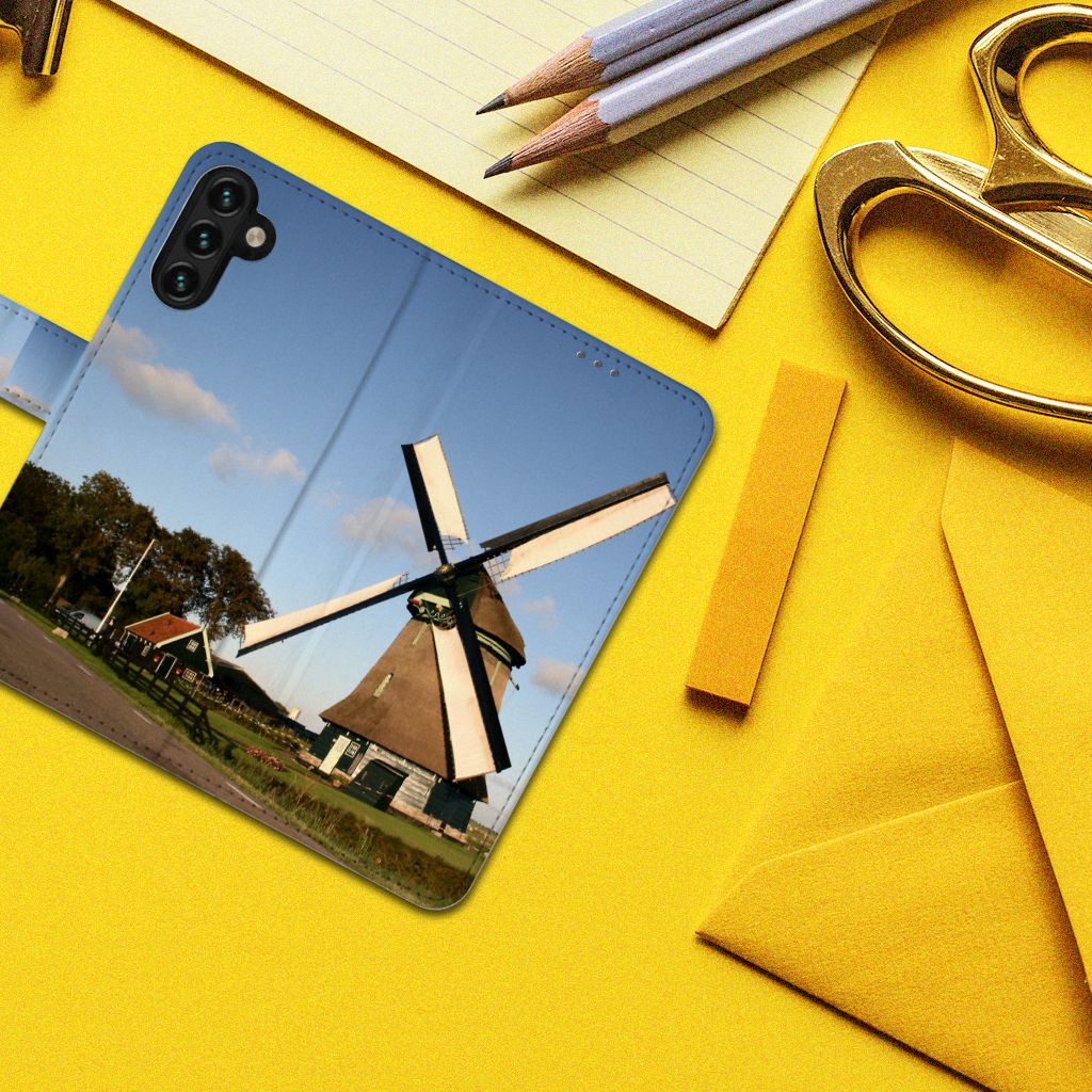 Misschien zijn er mensen die zich afvragen hoe een molen nu eigenlijk werkt. Indien je een design hoesje met print van molens koopt, raak je hier vanzelf van bewust. Een molen is een maalwerktuig, aangedreven door wind of water waarmee oa meel, olie, verf of specerijen werd bereid of bewerkt. Nederland is het molenland bij uitstek, omdat de molen symbolisch is voor onze strijd tegen het water. Dat Nederland een echt molenland is, blijkt ook uit de grote diversiteit aan molens wat betreft verschijningsvorm en functie. Een Samsung Galaxy A04s | Samsung Galaxy A13 5G Flip Cover met print zorgt voor een volledige bescherming van je smartphone en wordt aan alle zijden bedrukt met molens. Een deel van de foto’s staat ook op het lipje aan de buitenzijde. Verder is de houder aan de binnenzijde van TPU. Momenteel zijn de meeste molens in bezit van gemeentes of stichtingen en worden ze door vrijwillige molenaars in bedrijf gehouden. Met een hoesje met molen blijft jouw telefoon in tact. Je pasjes en briefgeld kun je in de vakjes aan de binnenzijde stoppen.