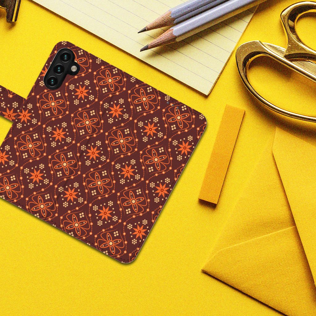 Batikken is een super oude kunstvorm. Met deze methode wordt een geweven stof met verf versierd. Er zijn zulke stoffen gevonden in het Midden-Oosten en Azië van meer dan tweeduizend jaar oud. Wie had kunnen bedenken dat we zo’n mooie batik-print duizenden jaren later zelfs op telefoonhoesjes zouden terugvinden? Dit Telefoon Hoesje in voor je Samsung Galaxy A04s | Samsung Galaxy A13 5G heeft een prachtig symmetrisch patroon. Door de bruine en oranje kleuren doet het design een beetje retro aan en is het toch subtiel te noemen. Dankzij de pasjeshouder in het boekhoesje, heb je altijd je belangrijkste bezittingen bij je. Super handig en ook nog eens erg mooi. En bovenal is je telefoon meteen goed beschermd tegen krassen en beschadigingen. Dit Batik brown-hoesje heeft een lipje aan de buitenkant en een houder gemaakt van TPU.