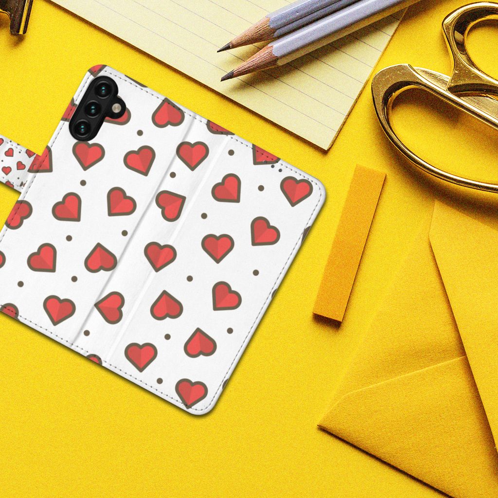 Met dit Samsung Galaxy A04s | Samsung Galaxy A13 5G Telefoon Hoesje met hartjes op een grijs met witte achtergrond maak jij een goede beurt als je dit cadeau geeft aan je vriend of vriendin. Bekroon je liefde voor elkaar met dit hele mooie boekhoesje, dat jouw telefoon aan alle zijden beschermt. Dit is echt een prachtige manier om je telefoon te beschermen. Het boekhoesje met design met Hearts is ook nog eens zeer praktisch, mede door de vakjes aan de binnenzijde en de magnetische sluitclip aan de buitenkant. De houder aan de binnenkant is van TPU, dus jouw smartphone kan met dit hoesje met hartjes op een grijs met witte achtergrond geen kant op. Dit is een hoesje om verliefd op te worden. Zonde om dit product aan je voorbij te laten gaan. Waarschijnlijk krijg je er eeuwig spijt van. Voor een habbekrats is dit hoesje met hartjes op een grijs met witte achtergrond te bestellen op onze website.