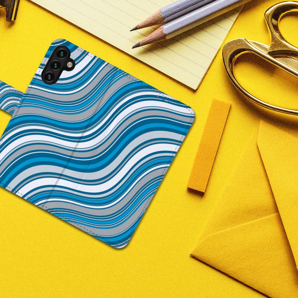 Zeer cool, dit hoesje met vooral blauwe kleuren, die in een golvende beweging jouw telefoon van een mooie uitstraling voorzien. Tijdens een zonnige vakantie aan zee is jouw smartphone perfect beschermd met dit telefoonhoesje. Het design Waves Blue van dit smartphone hoesje doet lichtjes denken aan een lolly, waarmee je een klein kind zeer blij maakt. Jouw Samsung Galaxy A04s | Samsung Galaxy A13 5G zal er ook zeer vrolijk uitzien samen met dit design hoesje. De witte en grijze kleuren staan in mooi contrast met het blauw, waardoor de uitstraling van deze accessoire zeer mooi is. Ook voor andere kleuren kun je natuurlijk uitstekend terecht in ons assortiment. Het design staat op een boekhoesje. Dit Telefoon Hoesje beschermt jouw telefoon aan alle zijden en beschikt over verschillende opbergvakjes voor pasjes en briefgeld. De case sluit perfect af met het lipje aan de buitenkant. De houder aan de binnenzijde is van TPU.