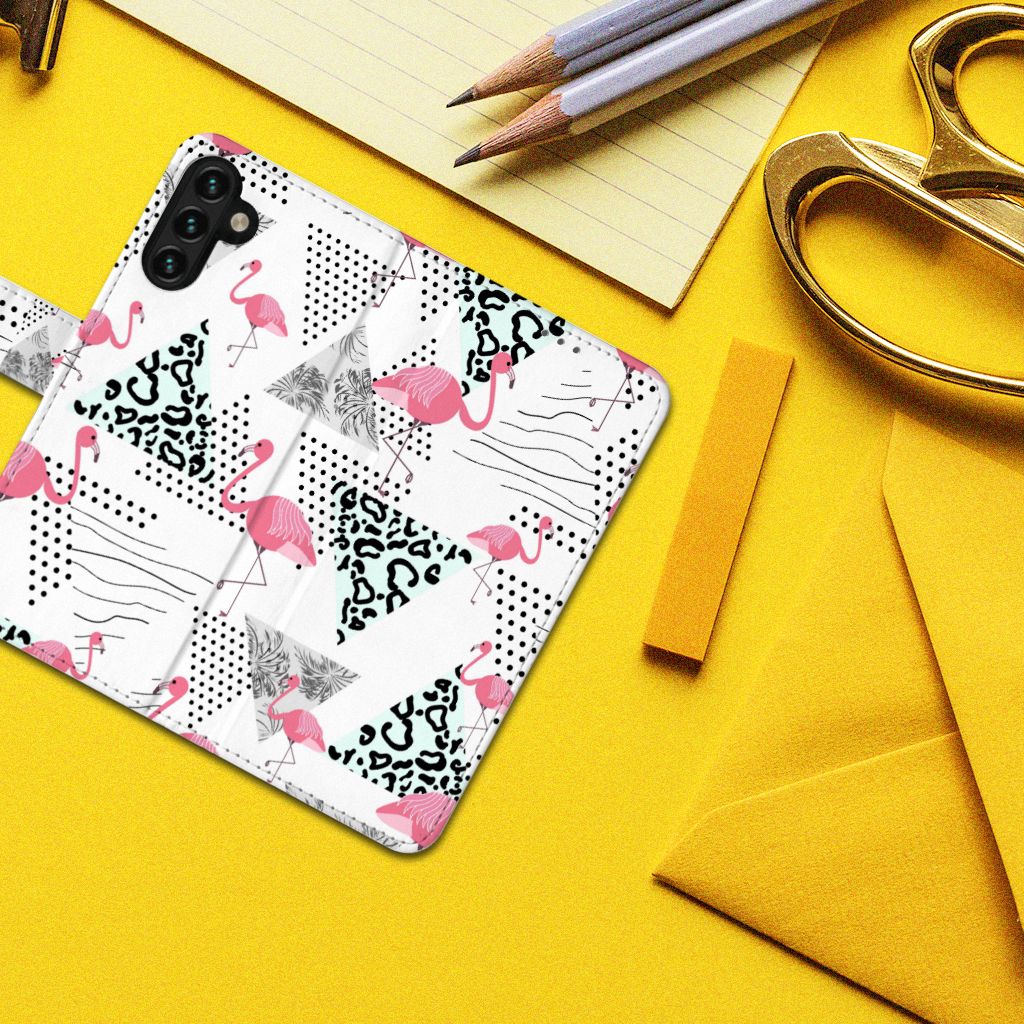 Samsung Galaxy A04s | Samsung Galaxy A13 5G Telefoonhoesje met magnetische lipje als sluiting Flamingo Triangle