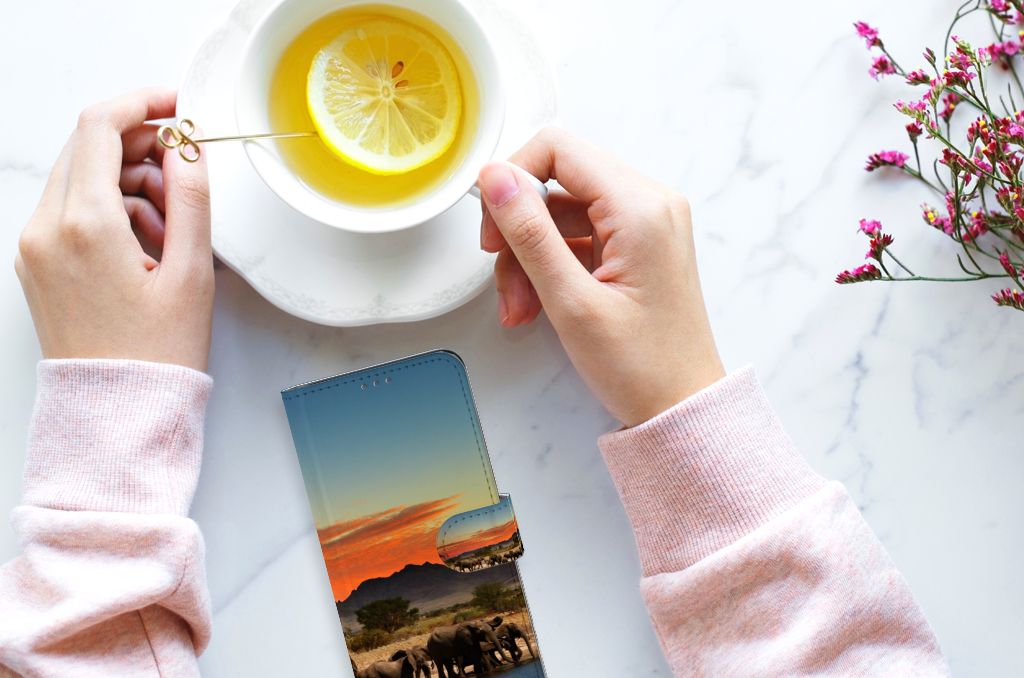 Op dit hoesje zie je een kudde olifanten genieten van het koude water onder een prachtige rode lucht. Dit hoesje straalt pure natuur uit, de olifant is namelijk het grootste landdier. Gegarandeerd zijn olifanten ook erg sterk, evenals onze bookcase. Als je jouw Samsung Galaxy A04s | Samsung Galaxy A13 5G hierin bewaart, loop je weinig kans op beschadigingen. Zolang hij in het hoesje zit, is hij volledig beschermd. Ook als je je telefoon per ongeluk laat vallen, biedt dit Telefoonhoesje met Pasjes optimale bescherming. Er kan bijna niks meer fout gaan. Het hoesje is vervaardigd uit duurzaam materiaal, waardoor het lang mee zal gaan.