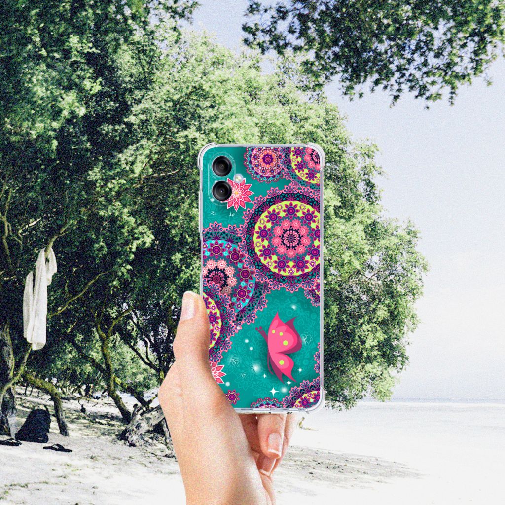 Ben je op zoek naar een uniek telefoonhoesje voor je Samsung Galaxy A05? Dan ben je bij B2C Telecom aan het juiste adres! Speciaal voor jou hebben we dit prachtige Cirkels en Vlinders design in onze collectie hoesjes opgenomen. Het design wordt bedrukt op een Back Cover en is gemaakt van flexibel rubber. Het hoesje is perfect voor de actieve smartphonegebruiker door de opstaande randen/hoeken. Denk aan mensen die veel sporten, reizen of wandelen en net iets meer zekerheid willen als het op hun geliefde telefoon aankomt. Het design wordt alleen aan de bovenkant van het hoesje bedrukt en de randen blijven transparant. Aan de zijkanten zijn uitsparingen gemaakt waardoor je met gemak alle knoppen en poorten kunt bedienen. Wij adviseren om dit hoesje in combinatie met een screenprotector te gebruiken voor een langere levensduur van je telefoon. Wil je dit hoesje nog iets extra's geven? Voeg dan gratis je naam of een quote toe! Is dit design hoesje toch niet helemaal wat je zocht? Ontwerp dan zelf een hoesje in ons ontwerpprogramma.