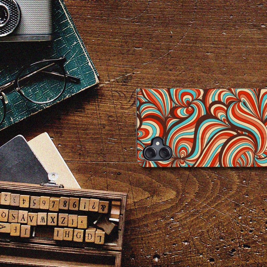 Voor de mensen die een beetje artistiek zijn, is er deze Samsung Galaxy A05 Bookcase met kleuren in een soort van retro stijl. Je gaat een beetje terug in de tijd met deze stand case in allerlei felle kleuren en vreemde vormen. De opdruk op dit design hoesje is zeer duurzaam en gaat net zo lang mee als de case zelf. De Retro print wordt in ons eigen magazijn op het hoesje gezet, met speciale uv-inkt. De stand case heeft voldoende uitsparingen dus je hoeft de telefoon nooit uit dit retro design hoesje te halen. Deze case beschermt jouw telefoon aan alle kanten en beschikt over 1 opbergvakje en een speciale standaard. Het hoesje wordt afgesloten met een magneet aan de binnenzijde. De houder aan de binnenzijde van de retro hoes is van TPU.
