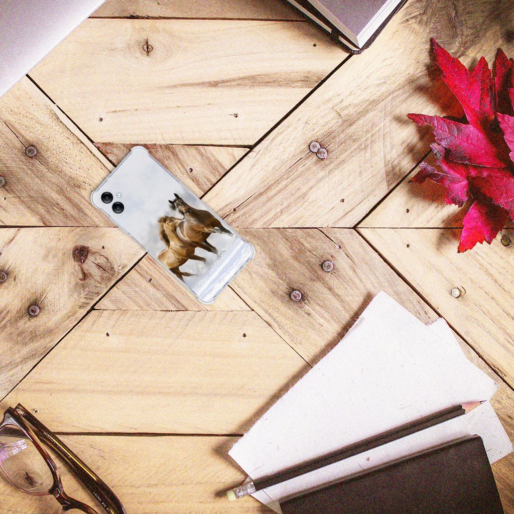 Ben je op zoek naar een uniek telefoonhoesje voor je Samsung Galaxy A05? Dan ben je bij B2C Telecom aan het juiste adres! Speciaal voor jou hebben we dit prachtige Paarden in onze collectie hoesjes opgenomen. Het design wordt bedrukt op een Case Anti-shock en is gemaakt van flexibel rubber. Het hoesje is perfect voor de actieve smartphonegebruiker door de opstaande randen/hoeken. Denk aan mensen die veel sporten, reizen of wandelen en net iets meer zekerheid willen als het op hun geliefde telefoon aankomt. Het design wordt alleen aan de bovenkant van het hoesje bedrukt en de randen blijven transparant. Aan de zijkanten zijn uitsparingen gemaakt waardoor je met gemak alle knoppen en poorten kunt bedienen. Wij adviseren om dit hoesje in combinatie met een screenprotector te gebruiken voor een langere levensduur van je telefoon. Wil je dit hoesje nog iets extra's geven? Voeg dan gratis je naam of een quote toe! Is dit design hoesje toch niet helemaal wat je zocht? Ontwerp dan zelf een hoesje in ons ontwerpprogramma.