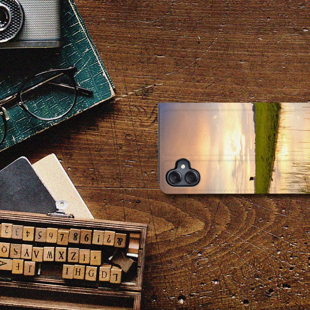 Het levert een idyllisch plaatje op, dit hoesje met een koe en ondergaande zon op de achtergrond. Door een koe buiten te laten lopen en grazen, hebben ze minder kans om ziek te worden. De Koe graast het liefst met soortgenoten, al zijn deze een stukje van de koe op de case verwijderd. Dit levert ook een mooi plaatje op, zoals je kunt zien op dit design hoesje. Deze stand case ziet er strak uit en is voorzien van verschillende uitsparingen. Een Samsung Galaxy A05 Hoesje maken met magneet aan de binnenzijde beschermt jouw smartphone overal. Alle zijden zijn bedrukt. Koeien hebben lange graasperioden nodig, afgewisseld door rust- en herkauwperioden. Zo goed als grazen voelt voor koeien, zo lang zal jouw design hoesje meegaan. De binnenkant van de stand case is van TPU, de buitenzijde van leer.