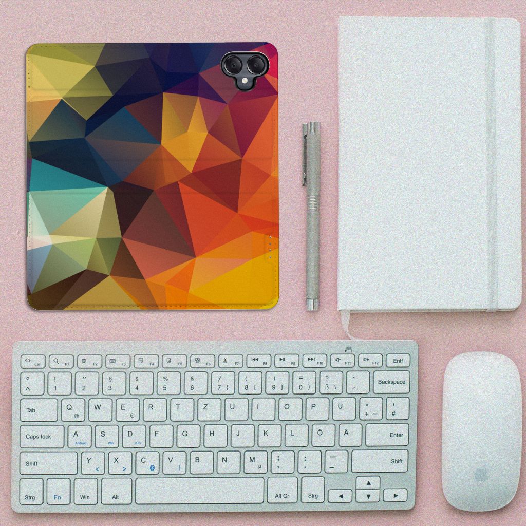 Veelkleurige driehoeken die samen eindeloze asymmetrische patronen lijken te vormen. Het is het abstracte schouwspel dat op dit fraaie hoesje voor je Samsung Galaxy A05 direct de aandacht trekt noemen we voor het gemak trekt noemen we voor het gemak Polygon Color. De een ziet er een berglandschap in, de ander piramides. Wat zie jij erin? Zeker is in elk geval dat de aanblik van dit fascinerende ontwerp je niet snel gaat vervelen. Het kleurige spel van lijnen en vlakken blijft eindeloos boeien en geeft jouw Stand Case een hippe en kunstzinnige uitstraling. De kracht die het lijnenspel uitstraalt, komt ook terug in het hoesje zelf. De solide hoes van PU-leer beschikt ook over een 1 pashouder en een speciale standaard. Het hoesje wordt afgesloten met een magneet aan de binnenzijde. De houder aan de binnenzijde is van TPU. Alle zijden worden bedrukt.