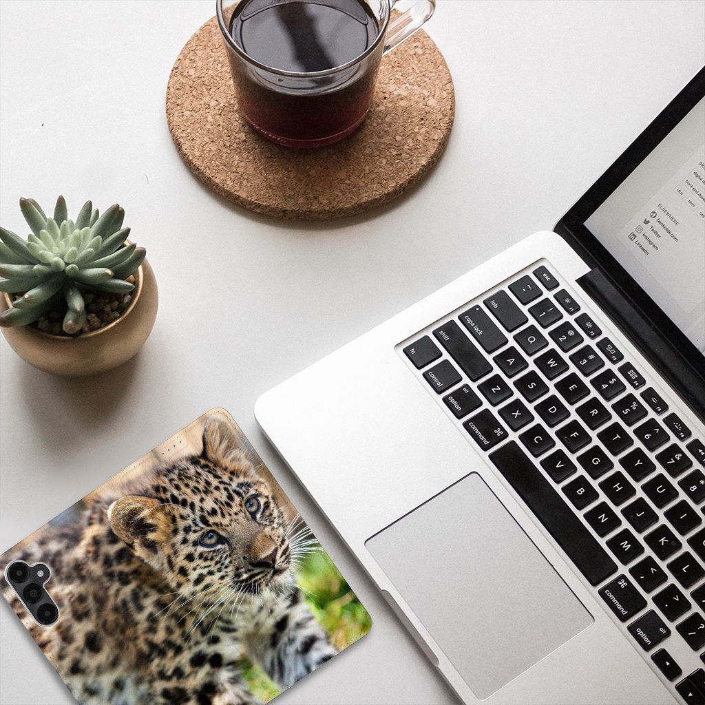 De luipaard is een grote, gespierde katachtige met korte, krachtige poten en een lange staart. Aangezien het op dit hoesje een baby luipaard betreft, zijn deze eigenschappen nog niet volledig tot wasdom gekomen. De kop van de luipaard is breed en een beetje rond van vorm met kleine, ronde oren. De snuit is middelgroot, met krachtige kaken en lange snorharen. De vacht van een luipaard is bedekt met veel zwarte vlekken. Kies je voor dit design hoesje, dan zal er van vlekken op jouw smartphone nooit en te nimmer sprake zijn. Het stoere en tegelijkertijd aandoenlijke design staat op een stand case. Een Samsung Galaxy A05s Hoesje maken beschermt jouw telefoon aan alle kanten en beschikt over een 1 opbergvakje en een speciale standaard. Het hoesje wordt afgesloten met een magneet aan de binnenzijde. De houder aan de binnenzijde is van TPU.
