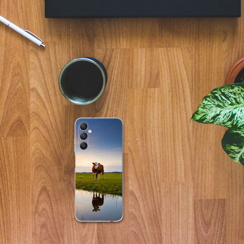 Het levert een idyllisch plaatje op, dit hoesje met een koe en ondergaande zon op de achtergrond. Door een koe buiten te laten lopen en grazen, hebben ze minder kans om ziek te worden. De Koe graast het liefst met soortgenoten, al zijn deze een stukje van de koe op de case verwijderd. Dit levert ook een mooi plaatje op, zoals je kunt zien op dit design hoesje. Dit tpu hoesje met koeien ziet er flexibel uit en is voorzien van alle uitsparingen. Een Samsung Galaxy A05S TPU Hoesje met koeien beschermt jouw smartphone vooral aan de achterkant en zijkanten. De zijkanten blijven transparant, de rest van het hoesje is bedrukt. Koeien herkauwen het liefst liggend, behalve wanneer het regent. Zo goed als grazen voelt voor koeien, zo duurzaam zal jouw smartphone blijven met dit design hoesje. Het TPU is schokabsorberend en niet te breken. De TPU case past altijd in je broekzak.