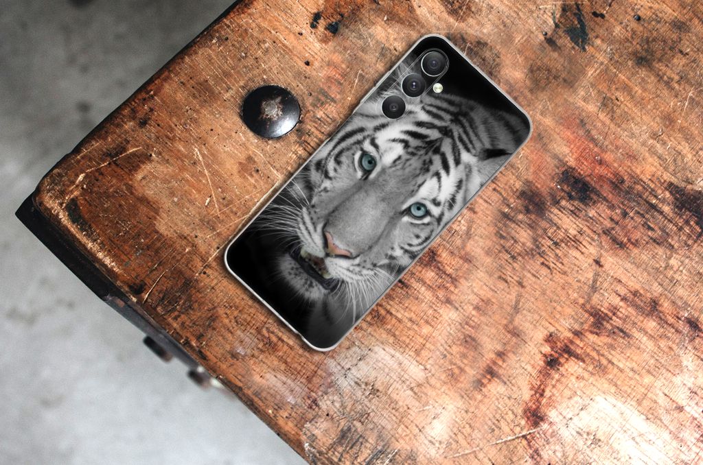 Omdat de Witte Tijger zo bijzonder is, zijn wij bereid deze voor zeer lage kosten op een tpu case te zetten. Dit kunnen we zo goedkoop doen omdat we het drukwerk in eigen beheer doen. Witte tijgers leefden lange tijd in de bossen van India, Bangladesh, Nepal, Bhutan en China en kunnen wel 257 kilo wegen. Dit zwaargewicht kunnen we bedrukken op verschillende soorten hoesjes, zoals deze tpu cases. Deze Samsung Galaxy A05S TPU Hoesje kan exclusief in het bezit van jou komen. Zeker als je er zelf nog unieke teksten en/of beelden aan toevoegt. Het tpu hoesje is zeer flexibel en wordt alleen aan de bovenzijde bedrukt. De randen van dit flexibele hoesje blijven doorzichtig. Tegenwoordig zijn witte tijgers alleen in gevangenschap te bewonderen. Jij zorgt voor een goede bescherming van je smartphone met dit design hoesje met witte tijger.