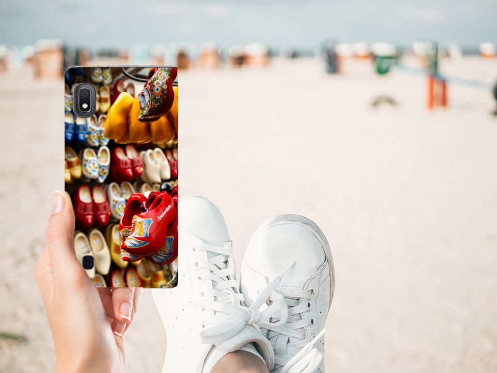 Een Samsung Galaxy A10 Book Cover met klompen is een schitterende versiering voor jouw smartphone. Traditioneel worden klompen in een gele kleur gemaakt, soms met eenvoudige versieringen die van plaats tot plaats verschillen. Deze mooie stand case met verschillende soorten klompen in verschillende kleuren is zo’n beetje de veiligste case die er bestaat. Het hoesje met klompen zorgt voor een volledige bescherming van je smartphone en wordt aan alle zijden bedrukt. De case heeft een magneet aan de binnenzijde, wat zorgt voor een perfecte sluiting. Verder is de houder aan de binnenzijde van TPU. Met een stand hoesje met klompen in verschillende kleuren op alle zijden blijft jouw gsm volledig in tact. Sta je liever zelf met je eigen mooie klompen op een hoesje? Ontwerp dan zelf een stand case met je eigen foto’s en teksten! Behalve klompen kun je zelfs je gehele boerderij op de stand case zetten.