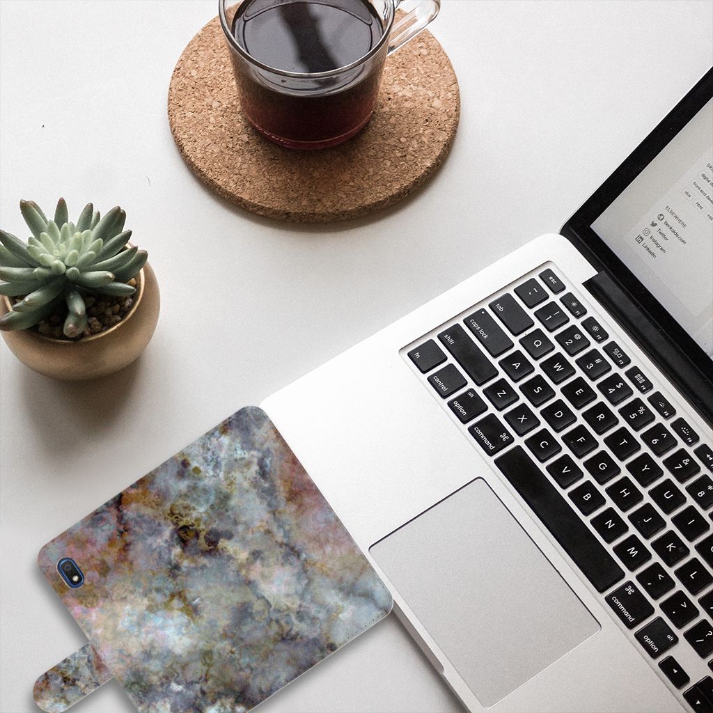 Samsung Galaxy A10 Bookcase met ruimte voor 3 pasjes Marmer Grijs
