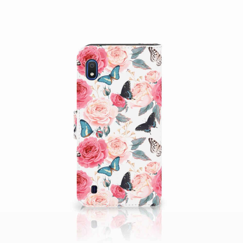 Samsung Galaxy A10 Hoesje gemaakt van TPU en kunstleer Butterfly Roses