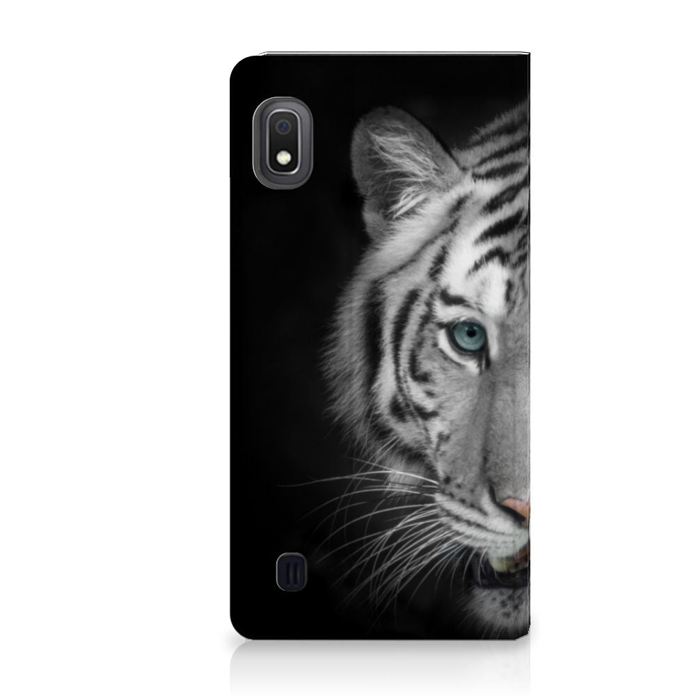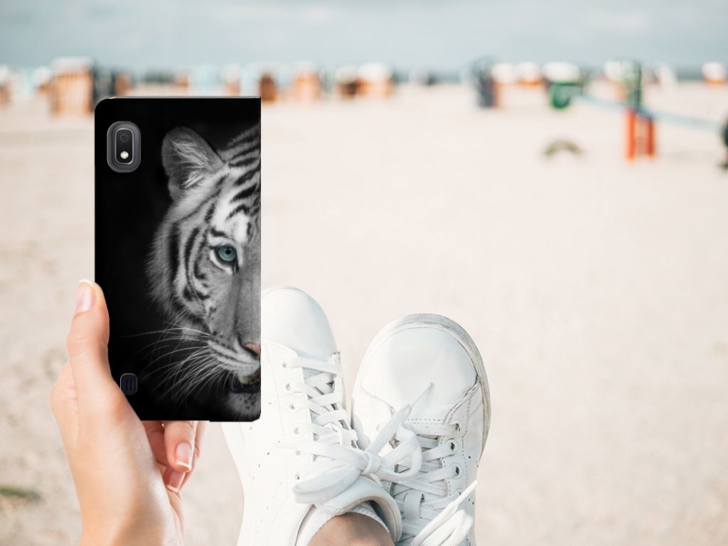 Omdat de Witte Tijger zo bijzonder is, zijn wij bereid deze voor zeer lage kosten op een stand case te zetten. Dit kunnen we zo goedkoop doen omdat we het drukwerk in eigen beheer doen. Witte tijgers leefden lange tijd in de bossen van India, Bangladesh, Nepal, Bhutan en China en kunnen wel 257 kilo wegen. Dit zwaargewicht kunnen we bedrukken op verschillende soorten hoesjes, zoals deze stand cases. Het Samsung Galaxy A10 Hoesje maken is van PU-leer (buitenzijde) en TPU (binnenzijde) en beschikt over een houder voor pasjes en briefgeld. Verder is dit hoesje met witte tijger print voorzien van magneten aan de binnenzijde. Tegenwoordig zijn witte tijgers alleen in gevangenschap te bewonderen. Jij zorgt voor de perfecte bescherming van je smartphone met dit design hoesje met witte tijger.