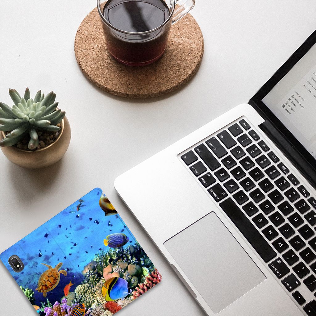 Dit kleurrijke hoesje met tropische Vissen is een ware eyecatcher. Als je aan het duiken bent en je treft een school aan met dit soort opvallende vissen, dan heb je een geweldige ervaring. Maar je hoeft er eigenlijk niet per se het water voor in te duiken. Want wij hebben een schitterende verzameling vissen op dit design hoesje gezet. Met onze zeer geavanceerde printer zetten we de afbeelding van vissen op alle zijden van de Samsung Galaxy A10 Hoesje maken. De case heeft aan de binnenkant een vakje waarin je jouw creditcard of ander pasje kwijt kunt. Ga je een dagje vissen, dan hoef je de portemonnee dus ook niet op zak te hebben. Verder is je telefoon natuurlijk maximaal beschermd met deze stand case met print van tropische vissen. De houder aan de binnenzijde van het design hoesje met vissen print is van TPU.