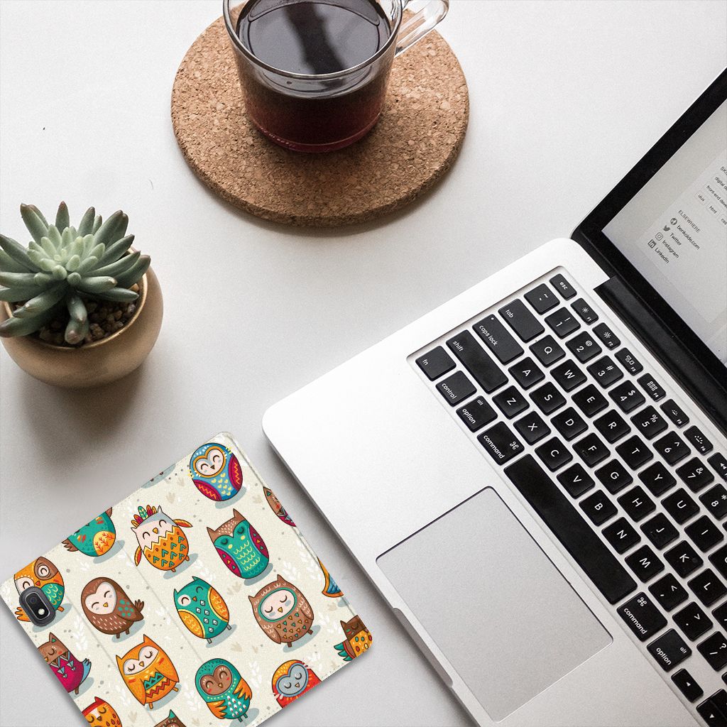 Deze Samsung Galaxy A10 Hoesje maken met Vrolijke Uilen is echt iets voor de nachtbrakers onder ons. De uil is zoals je weet bij uitstek een vogel die in de nachtelijke uren actief is. Ben jij ook iemand die s ’nachts tot leven komt, dan is deze stand case met uilen in felle kleuren echt iets voor jou. Als je tot in de late uurtjes op stap bent, komt het goed uit dat jouw smartphone aan alle kanten goed is beschermd met deze stand case met uilen. De case met uilen heeft een magnetische sluiting aan de binnenkant, waardoor de hoes niet openklapt als die uit je handen valt. Jouw creditcard of pinpas heb je als het goed is veilig opgeborgen in het vakje aan de binnenzijde. De houder aan de binnenzijde van de case met print van uilen is van het flexibele TPU. De wat ruigere types hebben veel baat bij deze stand case met uilen in felle kleuren.