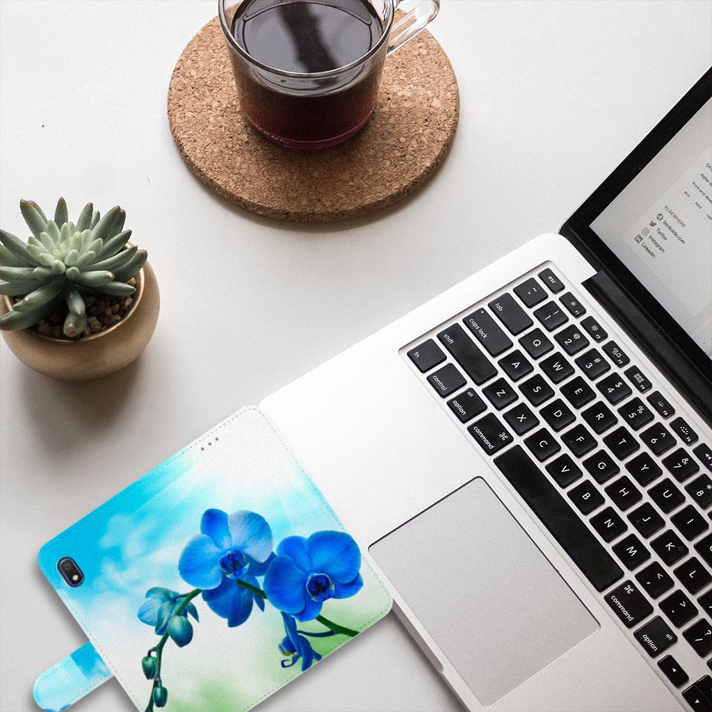Samsung Galaxy A10 Hoesje met magnetische sluitclip Orchidee Blauw