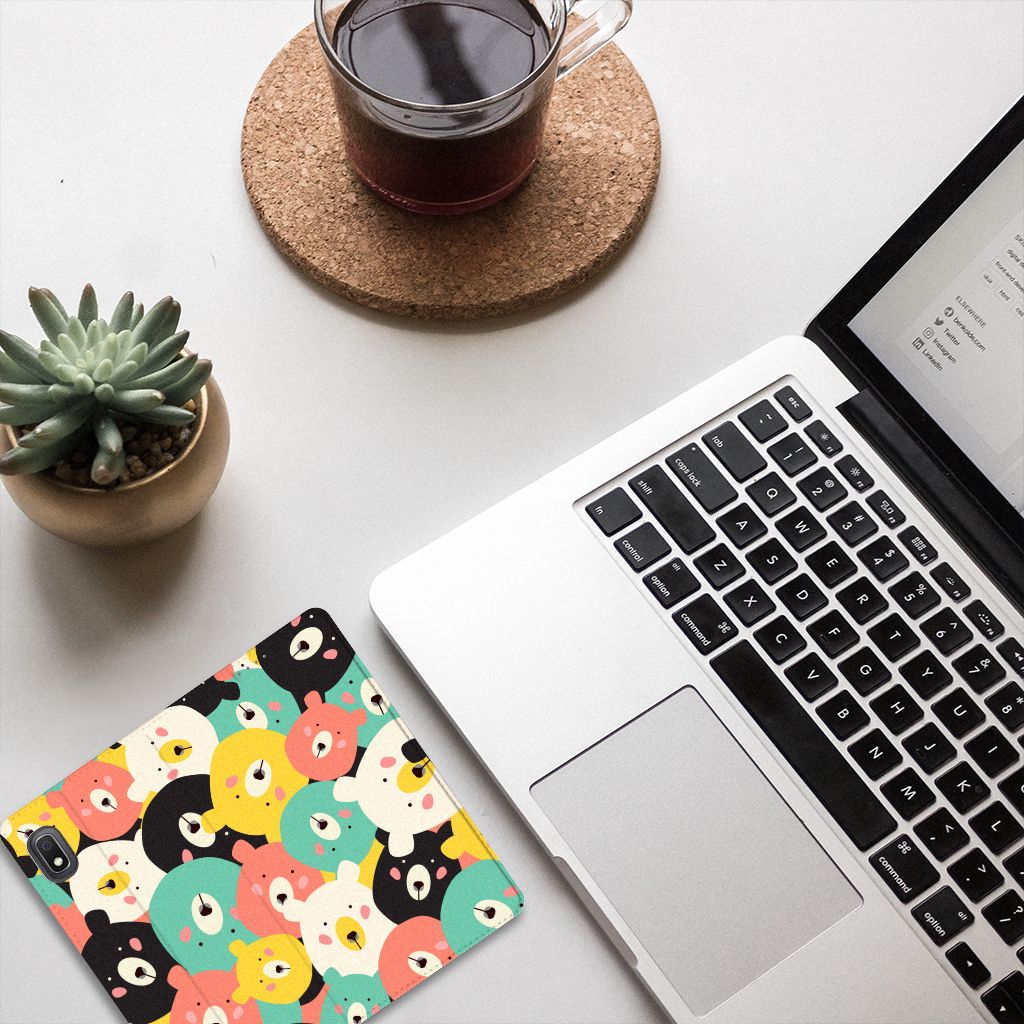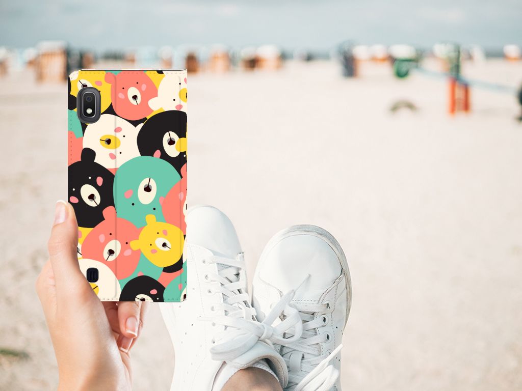Op dit hoesje vind je een bereschattig ontwerp! Vergeef ons de woordgrap, maar hoe moeten we dit lieve ontwerp anders omschrijven? Op dit knuffelige ontwerp zie je leuke, getekende beertjes in vrolijke kleuren als geel, blauw en roze. Dankzij de contrasterende witte en zwarte beertjes vallen de felle kleurtjes nog meer op. Al met al is dit Magnet Case voor de Samsung Galaxy A10 een perfect hoesje voor de knuffelberen onder ons. Dit populaire smartphonehoesje met het Bears-design heeft één vakje voor een pasje of briefgeld en is aan alle zijden bedrukt. Met de standcase zet je je telefoon gemakkelijk neer, zodat je je handen vrij hebt als je bijvoorbeeld een video wilt kijken. De binnenkant van de standcase is van grijs PU-leer. Dat is fijn, omdat je daardoor niet snel vlekken ziet op je hoesje.