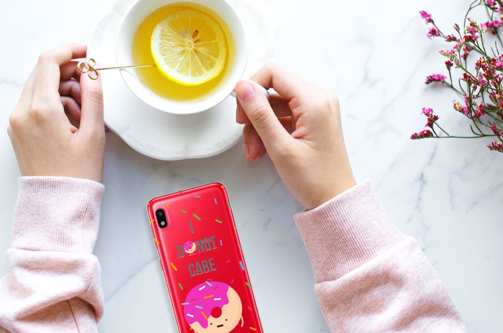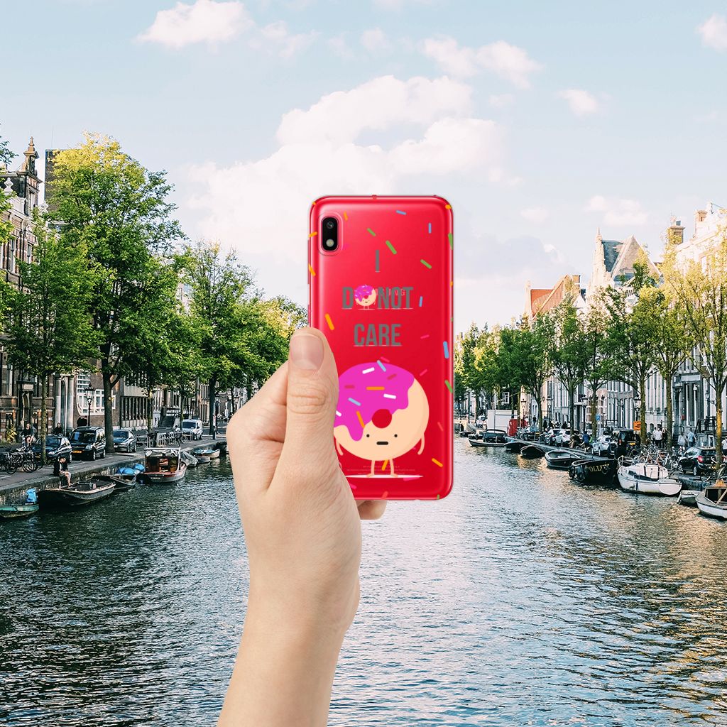 De cartoon met Donut op dit design hoesje geeft jouw smartphone een grappige en vrolijke uitstraling. De Samsung Galaxy A10 Siliconen Case zorgt ervoor dat je je schouders op zult halen als je telefoon een keer op de grond valt. Omdat er geen schade zal optreden kun jij je weg weer heel makkelijk vervolgen. De grappige Donut Care tpu case is nergens anders te krijgen. Het design is namelijk van de hand van onze eigen ontwerper. Daarnaast zal de case jouw smartphone goed beschermen. Een Donut Care tpu case is een zeer flexibel hoesje. Dit komt onder andere door het elastische en onbreekbare materiaal. Verder is de case zeer praktisch. Wat denk je bijvoorbeeld van de opstaande randen aan de voorkant. Verder beschikt de case ook nog eens over alle noodzakelijke uitsparingen. Ook kun je zelf je eigen unieke hoesje ontwerpen, met eigen cartoons, foto’s en teksten. Een Donut Care tpu case wordt alleen aan de bovenkant bedrukt. De randen blijven volledig doorzichtig.