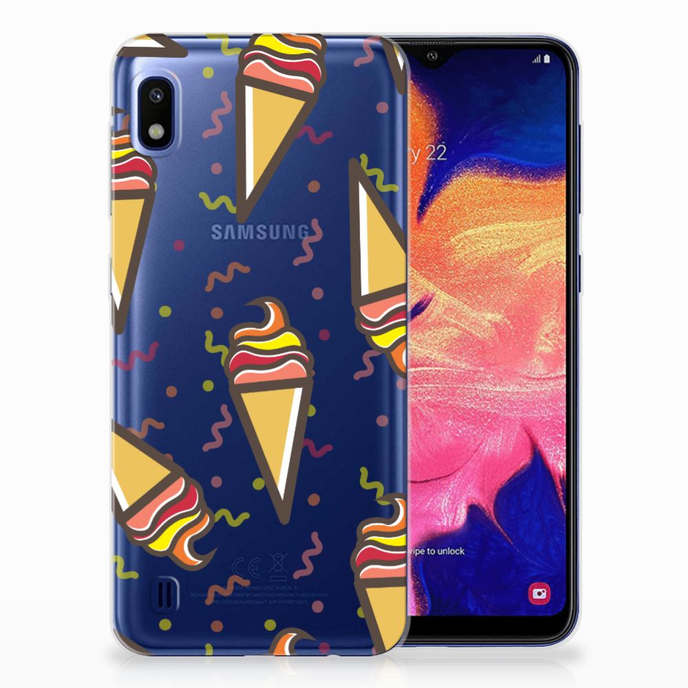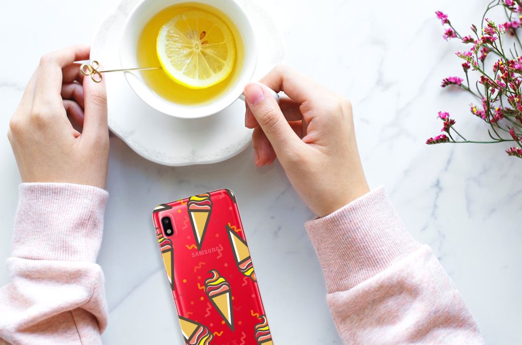Een vrolijke Samsung Galaxy A10 Siliconen Case met daarop verschillende ijsjes. Als je daar geen zomers gevoel meer van krijgt, weten wij het ook niet meer. De zomer en ijsjes zijn onlosmakelijk met elkaar verbonden. Tijdens een bezoekje aan het strand mag een lekker ijsje bijvoorbeeld niet ontbreken. Een design hoesje met lekkere ijsjes print past daar natuurlijk ook ontzettend goed bij. Jouw telefoon is goed beschermd met een tpu case met Icecream design. De aankoop van deze case is een heerlijke investering, die zich gegarandeerd terugbetaalt. De bovenkant van dit hoesje wordt bedrukt met ijsjes, de zijkanten blijven doorzichtig. De case is gemaakt van schokabsorberend materiaal en past altijd in je broekzak. Onder alle weersomstandigheden zal deze TPU case perfect functioneren, ook in de zomer met een ijsje in je hand. Dit smaakvolle hoesje is zeer goedkoop te bestellen en wordt zeer snel bezorgd.