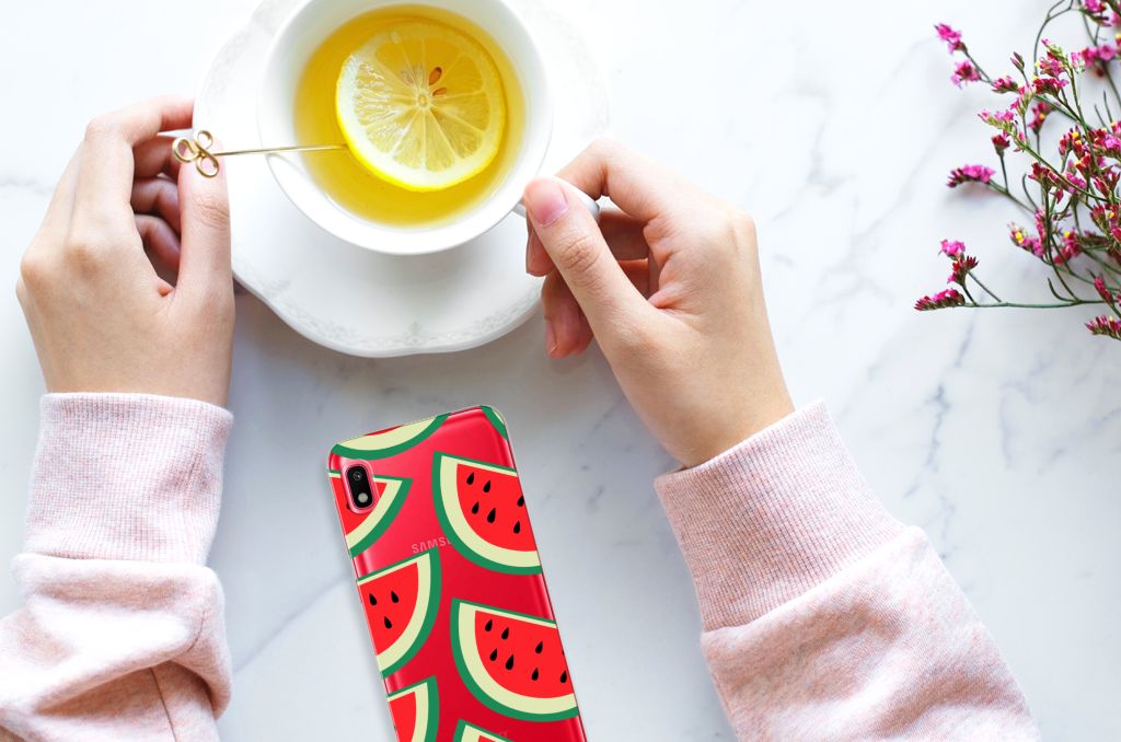 Watermeloenen zijn uitstekende dorstlessers, misschien dat je daarom juist in de zomermaanden extra enthousiast raakt van dit design hoesje Watermelons. Jij blijft gezond als je zo nu en dan een watermeloen neemt, jouw smartphone blijft in tact als je er deze Samsung Galaxy A10 Siliconen Case omheen doet. Deze tpu case wordt alleen aan de bovenkant bedrukt met watermeloenen is zeer flexibel. De randen van het hoesje blijven transparant. Je kunt ook kiezen voor andere soorten fruit op je hoesje. Kijk maar eens naar onze andere design hoesjes op onze website.