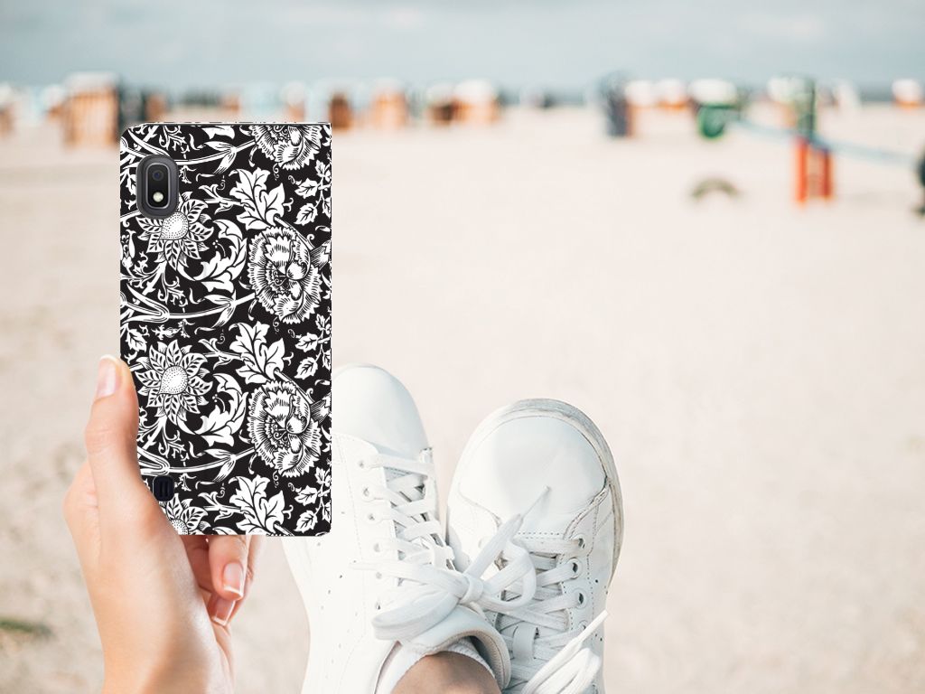Bloemen raken nooit uit de mode! Een mooie bloemenprint op je telefoonhoesje dus ook niet. Dit ontwerp met mooie, enigszins abstracte bloemen is perfect voor de liefhebber van bloemen die geen felgekleurd hoesje wil. Vanwege de zwarte achtergrond en de witte bloemen heb je toch een opvallend en uniek design in handen. Dit black flowers-ontwerp staat op een Smart Cover voor je Samsung Galaxy A10. Dit populaire smartphonehoesje met het beton-design heeft één vakje voor een pasje of briefgeld en is aan alle zijden bedrukt. Met de standcase zet je je telefoon gemakkelijk neer, zodat je je handen vrij hebt als je bijvoorbeeld een video wilt kijken. De binnenkant van de standcase is van grijs PU-leer. Dat is fijn, omdat je daardoor niet snel vlekken ziet op je hoesje.