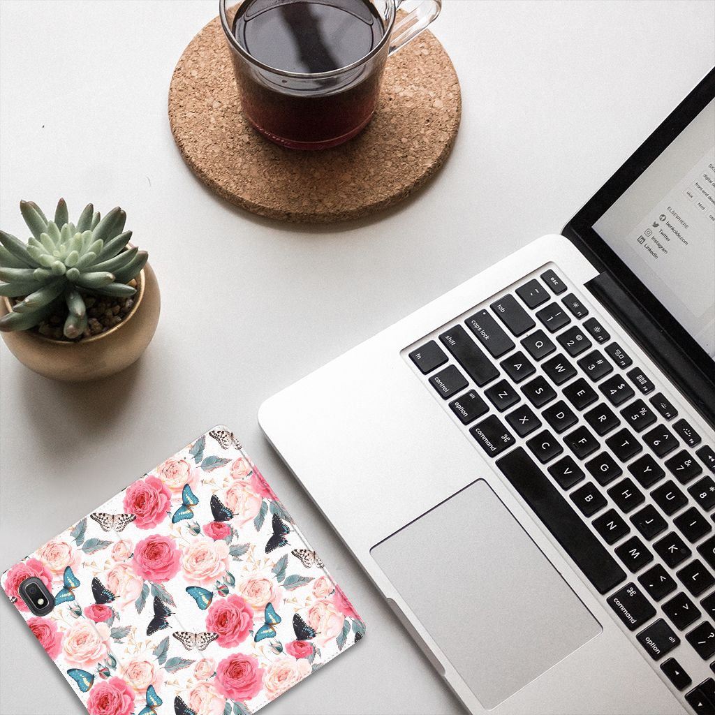Ben je op zoek naar een uniek telefoonhoesje voor je Samsung Galaxy A10? Dan ben je bij B2C Telecom aan het juiste adres! Speciaal voor jou hebben we dit prachtige Butterfly Roses design in onze collectie hoesjes opgenomen. Het design wordt bedrukt op een Smart Cover en heeft een vakje aan de binnenkant voor een pasje. Het fijne aan dit hoesje is dat je het als standaard neer kunt zetten. Hierdoor geniet je nog meer als je een filmpje aan het kijken bent op je telefoon. Het hoesje wordt afgesloten door magneten aan de binnenkant. Wil je dit design hoesje nog iets extra's geven? Voeg dan gratis je naam of een quote toe! Is dit design hoesje toch niet helemaal wat je zocht? Ontwerp dan zelf een hoesje in ons ontwerpprogramma.
