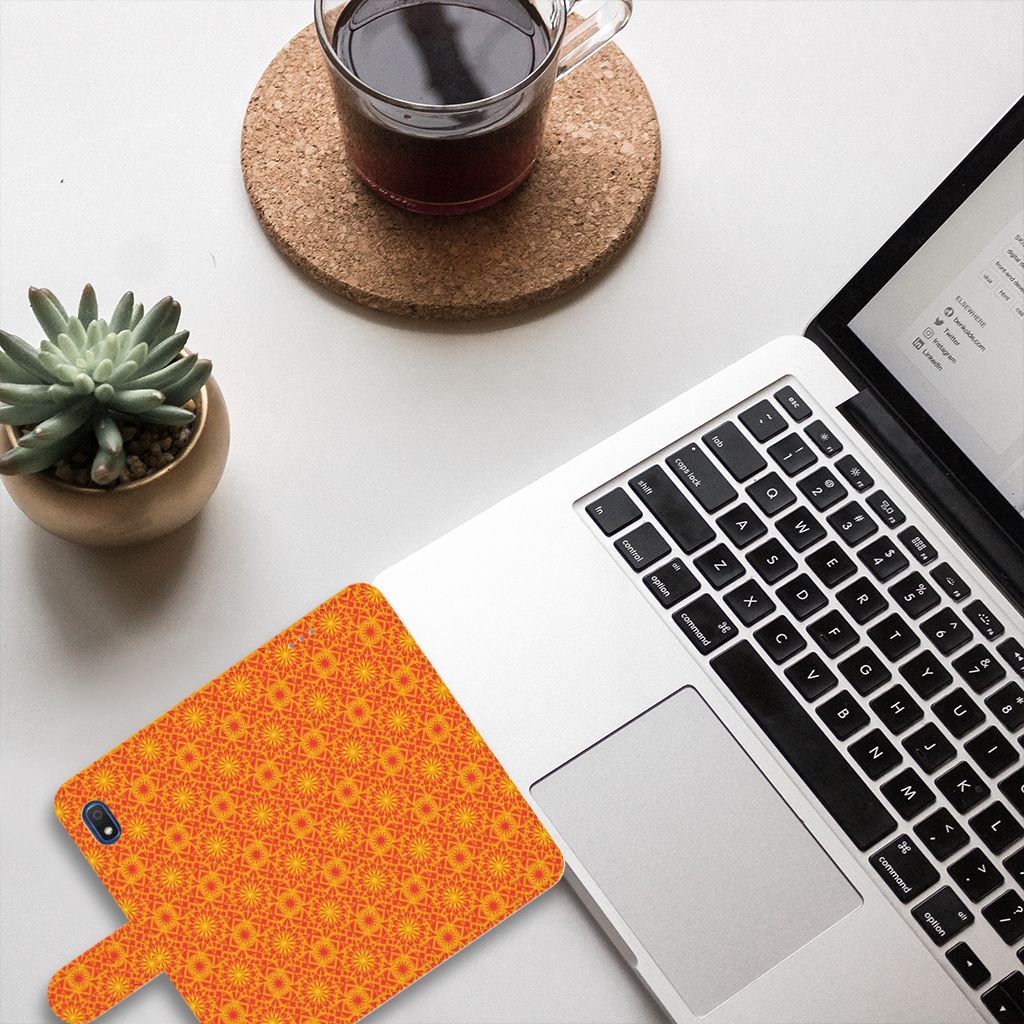 Batikken is een super oude kunstvorm. Met deze methode wordt een geweven stof met verf gedecoreerd. Er zijn stoffen gevonden in het Midden-Oosten en Azië van meer dan tweeduizend jaar oud. Wie had kunnen bedenken dat we zo’n mooie batik-print duizenden jaren later zelfs op telefoonhoesjes zouden terugvinden? Dit Telefoon Hoesje in voor je Samsung Galaxy A10 heeft een mooie oranje kleur en een prachtig symmetrisch patroon. Vanwege de felle kleurtjes is dit hoesje onwijs vrolijk. Dankzij de pasjeshouder in het boekhoesje, heb je altijd je belangrijkste bezittingen bij je. Super handig en ook nog eens erg mooi. En bovenal is je telefoon meteen goed beschermd tegen krassen en beschadigingen. Dit batik orange-hoesje heeft een lipje aan de buitenkant en een houder gemaakt van TPU.