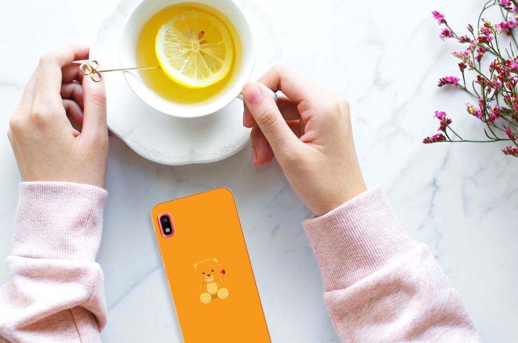 Dit vrolijke teddybeertje zou je het liefst willen knuffelen. Dat wordt lastig, op een telefoonhoesje. Maar dat betekent niet dat dit design niet evengoed onwijs schattig is. Het ontwerp is vanwege de oranje achtergrondkleur evengoed subtiel. Dit Baby Beer-design is perfect voor de knuffelberen onder ons. Dit design staat op een Telefoonhoesje met Naam voor je Samsung Galaxy A10. TPU is flexibel en onbreekbaar. Zo is je telefoon aan de achterkant en de randen heel goed beschermd. De case is aan de bovenkant bedrukt, de randen blijven transparant. Het TPU-hoesje is perfect te combineren met een screenprotector, zo zijn je telefoon en je beeldscherm perfect beschermd.