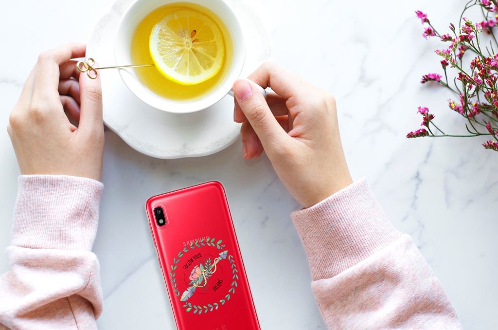 Ben je op zoek naar een uniek telefoonhoesje voor je Samsung Galaxy A10? Dan ben je bij B2C Telecom aan het juiste adres! Speciaal voor jou hebben we dit prachtige Boho Dreams design in onze collectie hoesjes opgenomen. Het design wordt bedrukt op een Telefoonhoesje met Naam en is gemaakt van flexibel rubber. Het design wordt alleen aan de bovenkant van het hoesje bedrukt en de randen blijven transparant. Aan de zijkanten zijn uitsparingen gemaakt waardoor je met gemak alle knoppen en poorten kunt bedienen. Wij adviseren om dit hoesje in combinatie met een screenprotector te gebruiken voor een langere levensduur van je telefoon. Wil je dit design hoesje nog iets extra's geven? Voeg dan gratis je naam of een quote toe! Is dit design hoesje toch niet helemaal wat je zocht? Ontwerp dan zelf een hoesje in ons ontwerpprogramma.