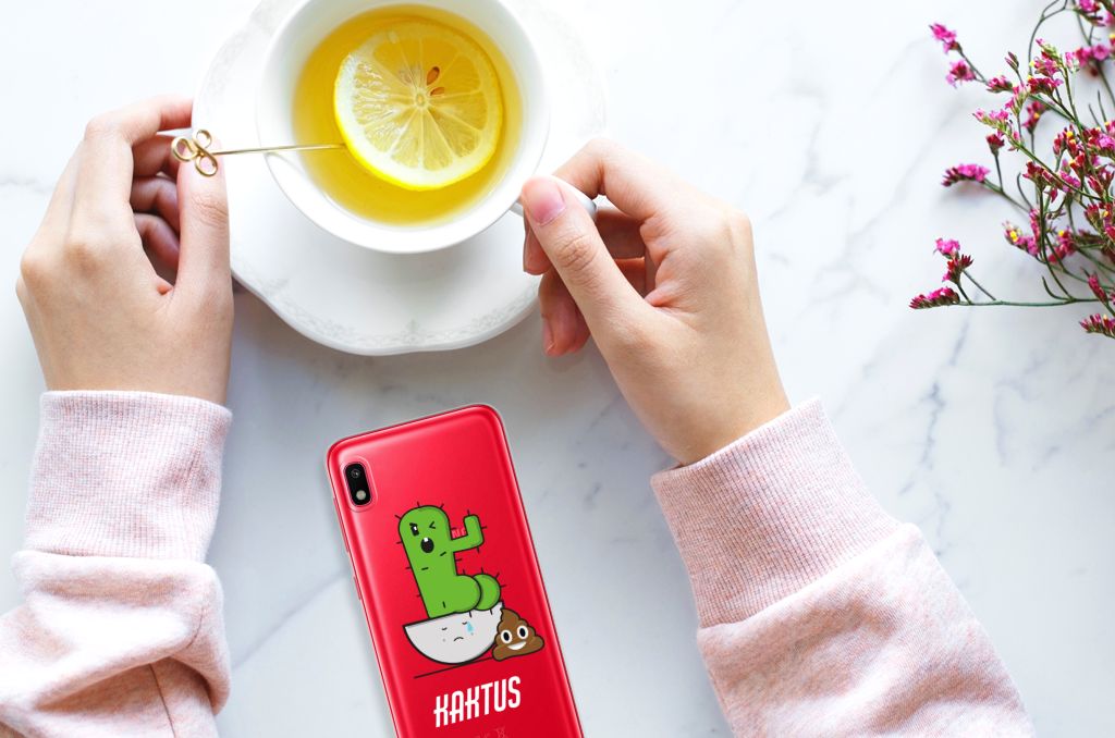 De cactus is leuk, hip en makkelijk te verzorgen. Maar wie denkt dat hij helemaal zonder aandacht kan, heeft het mis. Op dat moment komt hij in opstand, zoals op dit grappige design hoesje met cactus te zien is. Deze Telefoonhoesje met Naam met Cactus Poo design is van alle markten thuis. Het is een zeer veilig maar ook prachtig en praktisch hoesje. Dat bewijzen het flexibele en schokabsoberende materiaal en het lichte gewicht. De meeste cactussen komen uit Amerika. Daar groeien ze in hun natuurlijke omgeving, de woestijn en steppen. Maar ze groeien ook in tropische regenwouden. Dit geeft aan dat de cactus een plant is die zich makkelijk aanpast. Dat geldt dus helaas niet voor de cactus op dit tpu hoesje, maar jouw Samsung Galaxy A10 is wel goed beschermd. Valt de telefoon op de grond, dan beschermen de opstaande randen van de case het touchscreen. Alleen de bovenkant van dit hoesje wordt bedrukt met de geinige kaktus. De zijkanten van de TPU case blijven transparant.