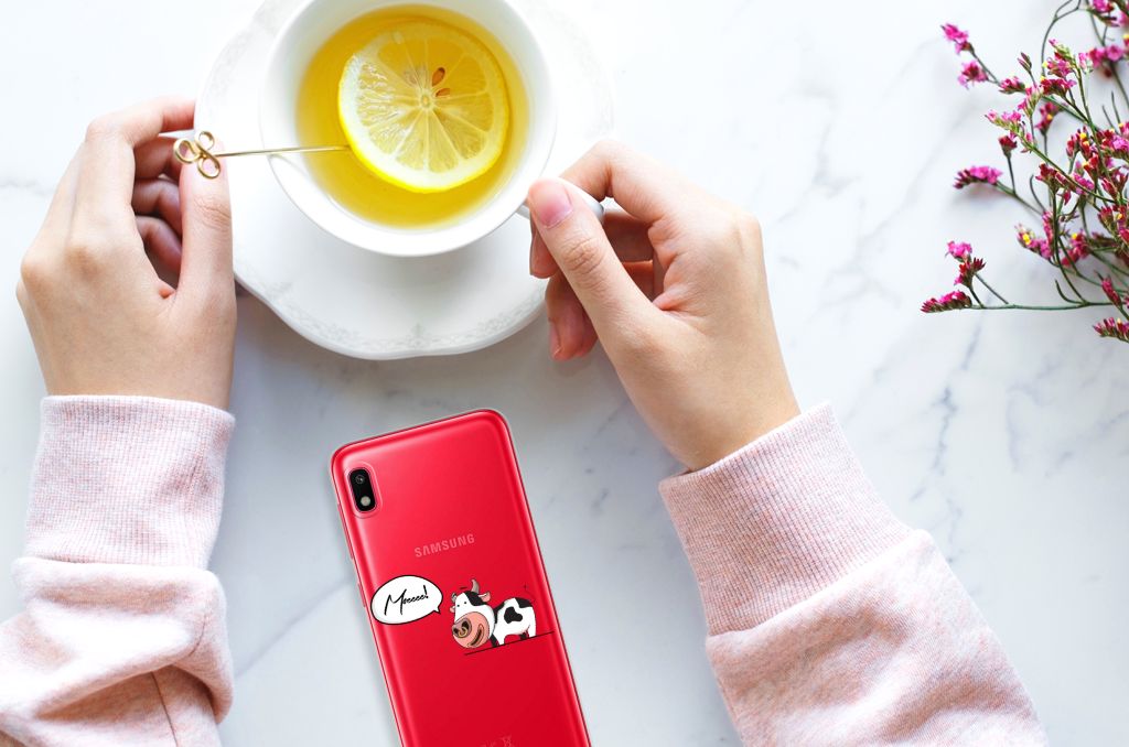 Ben je op zoek naar een uniek telefoonhoesje voor je Samsung Galaxy A10? Dan ben je bij B2C Telecom aan het juiste adres! Speciaal voor jou hebben we dit prachtige Cow design in onze collectie hoesjes opgenomen. Het design wordt bedrukt op een Telefoonhoesje met Naam en is gemaakt van flexibel rubber. Het design wordt alleen aan de bovenkant van het hoesje bedrukt en de randen blijven transparant. Aan de zijkanten zijn uitsparingen gemaakt waardoor je met gemak alle knoppen en poorten kunt bedienen. Wij adviseren om dit hoesje in combinatie met een screenprotector te gebruiken voor een langere levensduur van je telefoon. Wil je dit design hoesje nog iets extra's geven? Voeg dan gratis je naam of een quote toe! Is dit design hoesje toch niet helemaal wat je zocht? Ontwerp dan zelf een hoesje in ons ontwerpprogramma.