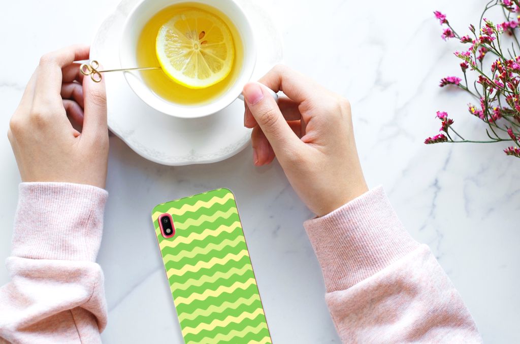 Dit groene design hoesje met groene golven is speciaal ontworpen voor jouw telefoon. We hebben een vleugje geel toegevoegd, zodat er sprake is van variatie. Dit Waves Green hoesje ziet er flitsend uit. Dat kan ook niet anders, als je weet dat we veel energie steken in het bedenken van originele designs. Een heel strak Samsung Galaxy A10 TPU bumper, met zeer veel opties. Past dit groene design hoesje met golven goed bij jou? Bestel het dan vandaag nog, tegen zeer lage kosten. Het design staat op een TPU case. Dit hoesje wordt alleen aan de bovenkant bedrukt en is zeer flexibel. De randen van het hoesje met groene golven blijven transparant en worden niet bedrukt. Met dit hoesje past jouw telefoon altijd in je broekzak.