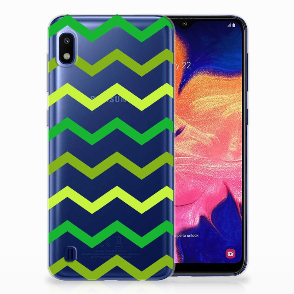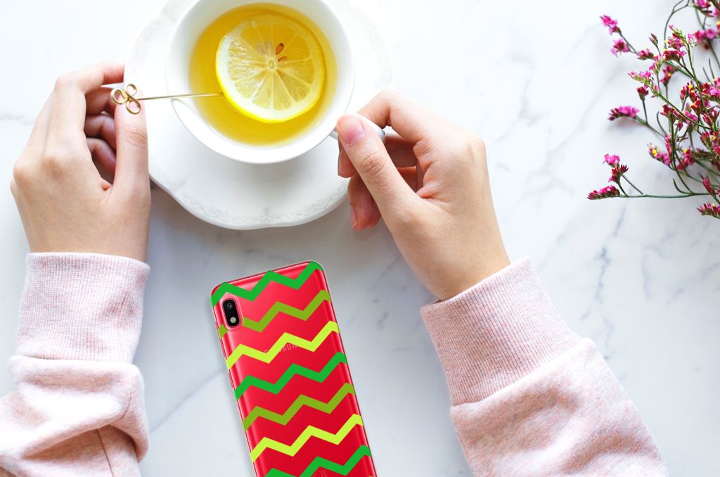 Dit zigzag groene design hoesje is speciaal ontworpen voor jou. We hebben bewust verschillende stijlen groen gebruikt, zodat er voldoende sprake is van variatie. Dit groene hoesje ziet er super strak uit. Dat kan ook niet anders als je weet dat onze designer zijn creativiteit heeft gebruikt. Hij schudt voortdurend nieuwe designs uit zijn mouw en dit zigzag groene hoesje is een van zijn fraaiste creaties. Een heel tof Samsung Galaxy A10 TPU bumper, al zeggen we het zelf. Valt dit Zigzag Groen design hoesje goed bij jou? Bestel het dan vandaag nog en je hebt het morgen in huis. Het design staat op een TPU case. Dit hoesje wordt alleen aan de bovenkant bedrukt en is zeer flexibel. De randen van het hoesje blijven transparant en worden niet bedrukt. Met dit hoesje past jouw telefoon altijd in je broekzak.
