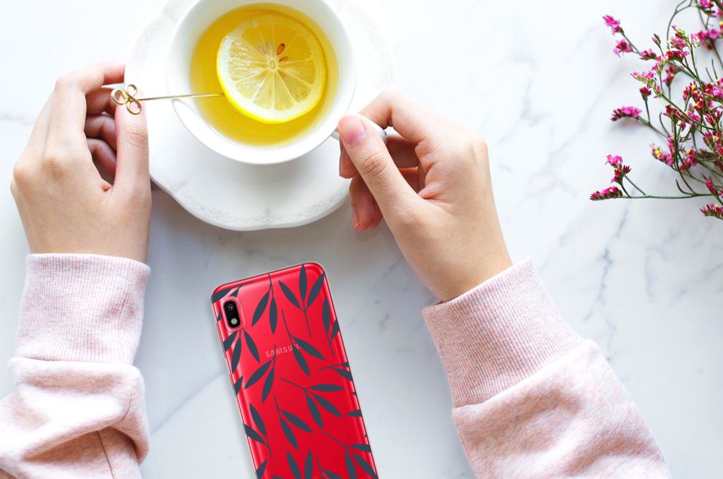 Je bent een klein beetje verbonden met de natuur als je kiest voor dit Samsung Galaxy A10 TPU Case met print van donkergrijze bladeren. De print bestaat uit verschillende donkergrijze bladeren en dit zorgt voor een fraai decoratief geheel. Met dit patroon van donkergrijze bladeren op een lichtgrijze met witte achtergrond creëer je een opvallende uitstraling voor jouw smartphone. Jij doet er verstandig aan om je telefoon te beschermen met dit design hoesje met donkergrijze bladeren op een witte achtergrond, die staan op een tpu case. Dit tpu hoesje heeft onder meer de opstaande randen aan de voorzijde, waardoor bij een val van de smartphone het scherm de grond niet raakt. Het beschermt jouw telefoon aan de achterkant en zijkanten zeer goed. Het TPU is zeer flexibel en onbreekbaar. De zijkanten van de case blijven transparant. We hebben meerdere hoesjes met bladeren. Je kunt ook je eigen hoesje met eigen foto’s van bladeren ontwerpen.