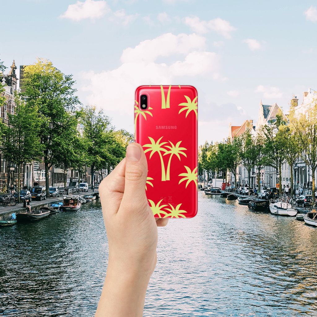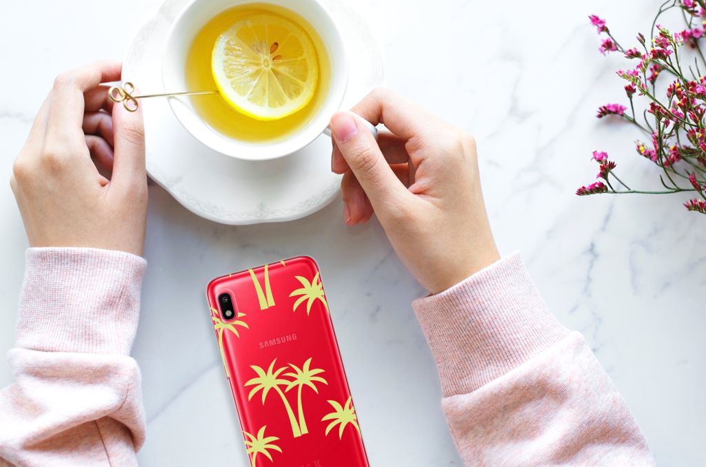 Je krijgt direct een vakantiegevoel als je kiest voor een Samsung Galaxy A10 TPU Case met opdruk van lichtgroene Palmtrees. Sommige mensen hebben ook een palmboom in hun tuin staan, wij kunnen er meerdere op een tpu case zetten. Jouw smartphone is op en top beschermd met een tpu case met lichtgroene palmbomen tegen een witgrijze achtergrond en ziet er schitterend uit. Het is heel verstandig je telefoon te beschermen met een tpu hoesje met palmbomen tegen een witgrijze achtergrond. De TPU case met print van lichtgroene palmbomen beschermt jouw telefoon voornamelijk aan de achterzijde. De randen van de case worden niet bedrukt met lichtgroene palmbomen. TPU is zeer flexibel.