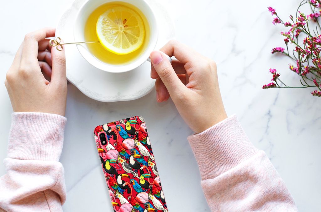 Dit exotische hoesje vol prachtige vogels is een genot voor het oog. Dankzij de felgekleurde toekans, papegaaien, flamingo’s en kaketoes op dit design word je meteen vrolijk als je naar dit hoesje kijkt. Je waant je meteen in de tropen met dit bonte gezelschap tegen een witte achtergrond. Het ontwerp staat op een TPU Hoesje voor de Samsung Galaxy A10. TPU is een flexibel en onbreekbaar materiaal. Zo is je telefoon aan de achterkant en de randen heel goed beschermd. De case met het birds-design is aan de bovenkant bedrukt, de randen blijven transparant. Het TPU-hoesje is perfect te combineren met een screenprotector. Zo zijn je telefoon en je beeldscherm optimaal beschermd.