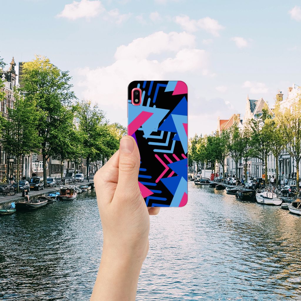 Dit fraaie hoesje met het design Funky Triangle is alles behalve eenvoudig en sober. Dat komt goed uit, want je hebt natuurlijk ook geen doorsnee telefoon gekocht. Mocht je dat wel hebben gedaan, dan wordt hij meteen speciaal als je een Samsung Galaxy A10 TPU Hoesje koopt voor een spotprijsje. Een ding is zeker: opvallen ga je beslist met dit hoesje met paarse, roze en blauwe driehoeken. Jij zult in je element zijn met dit design hoesje met paarse, roze en blauwe driehoeken, omdat het er schitterend uitziet en jouw telefoon zeer goed beschermt. Het smartphonehoesje beschermt jouw telefoon vooral aan de zijkanten en achterkant en wordt alleen aan de bovenzijde bedrukt met paarse, roze en blauwe driehoeken. De zijkanten blijven doorzichtig. De paarse, roze en blauwe driehoeken maken de case helemaal af.